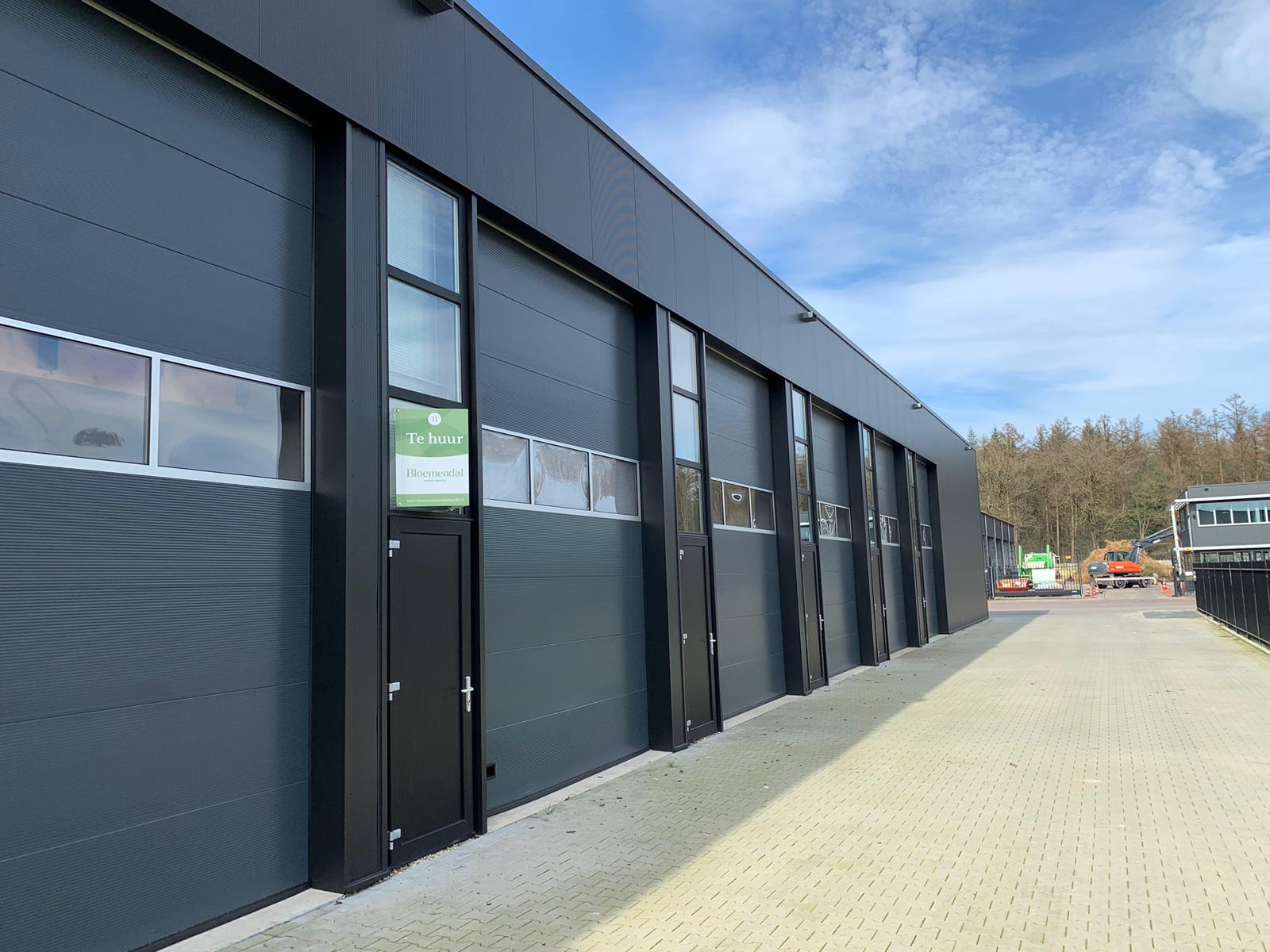 – Handbediende overheaddeur (ca. 5 meter hoog 3,5 meter breed).