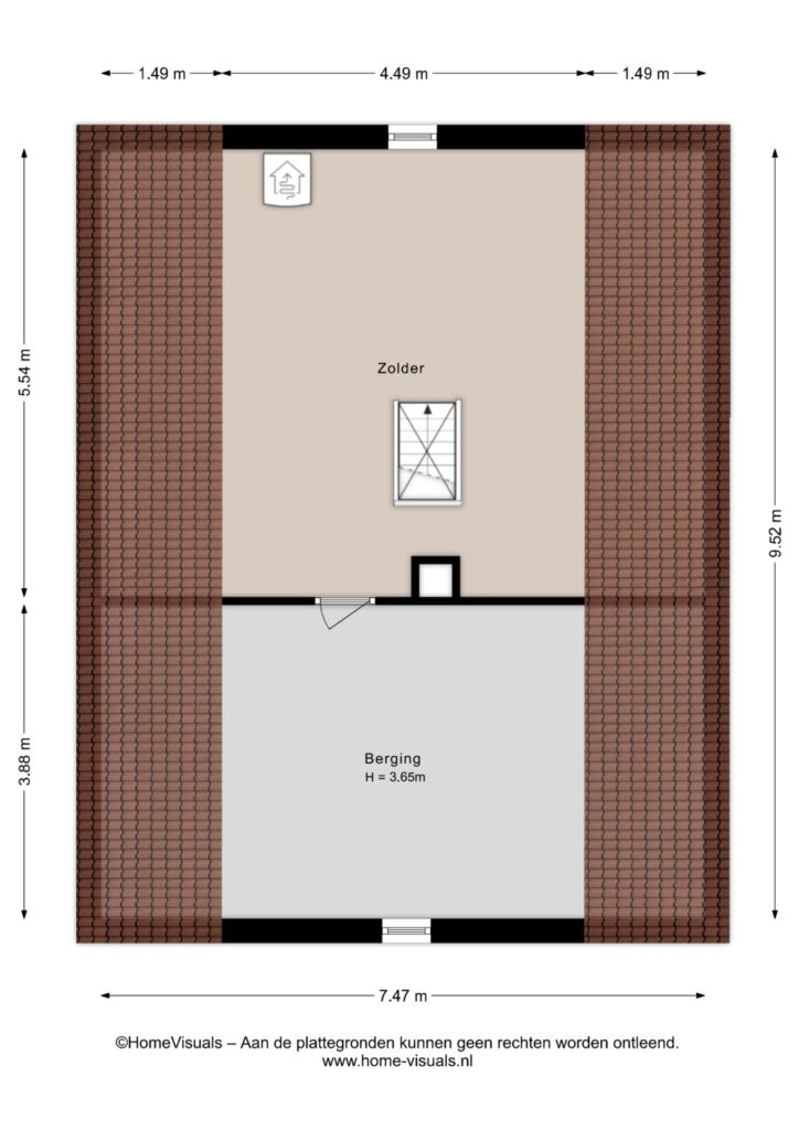 Zolder: Zolder is middels scheidingsmuur opgedeeld in tweeën en biedt volop bergruimte.