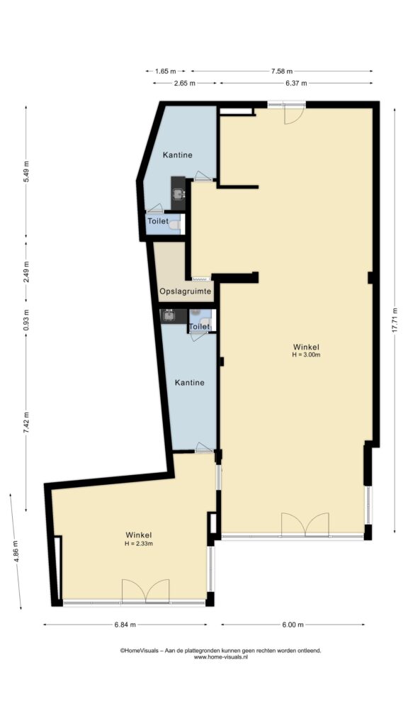 Het pand is voorzien van twee kantines, beide uitgerust met een keuken en toilet, wat extra functionaliteit biedt voor personeel of klanten. Daarnaast is er voldoende toiletvoorziening aanwezig voor het publiek. De ruimte is goed onderhouden en wordt leeg opgeleverd.