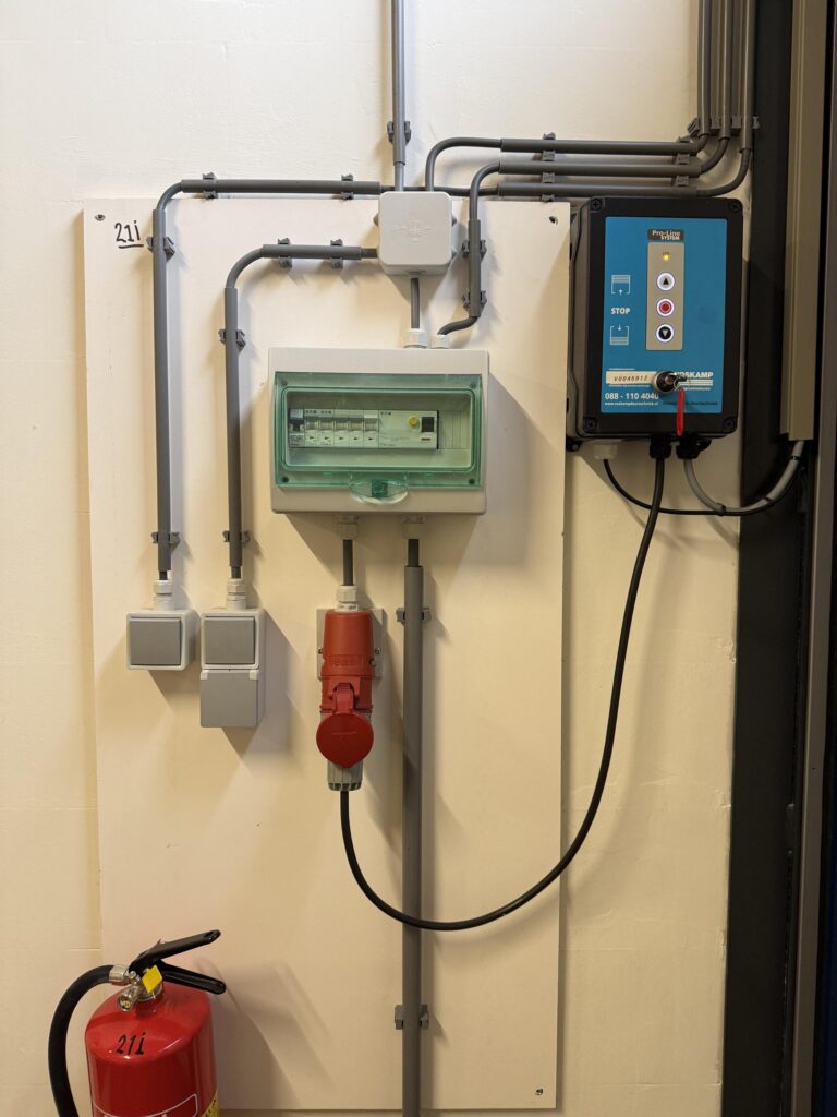 – 380V aansluiting (3x16Amp) t.b.v. overheaddeur;