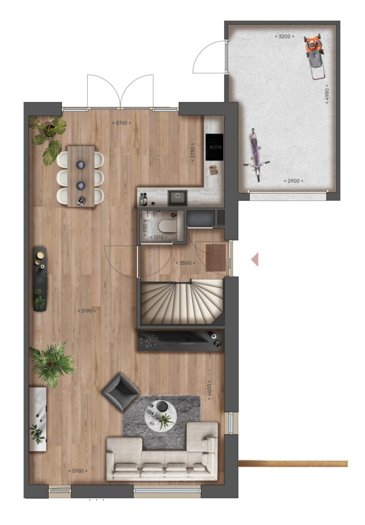 De 2-1-kapwoningen beschikken over een royale leefruimte op de begane grond met openslaande deuren naar de tuin. Boven bevinden zich drie slaapkamers en een badkamer. Via een vaste trap bereik je vervolgens de ruime zolder.