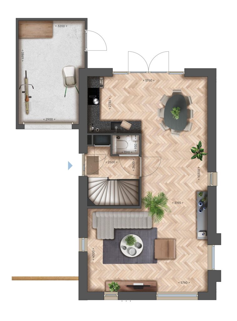 De vrijstaande woningen beschikken over een royale leefruimte op de begane grond met openslaande deuren naar de tuin. Boven bevinden zich drie slaapkamers en een badkamer. Via een vaste trap bereik je vervolgens de ruime zolder.
