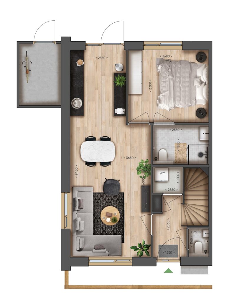 Rondom een gezamenlijke binnentuin liggen 6 levensloopbestendige woningen. Deze woningen zijn praktisch en ruim ingericht met een slaap- en badkamer op de begane grond. Hier woont u comfortabel, nu en in de toekomst. De gezamenlijke binnentuin krijgt een open en groen karakter, waardoor ontmoeting en sociale cohesie op een vanzelfsprekende manier worden gestimuleerd.