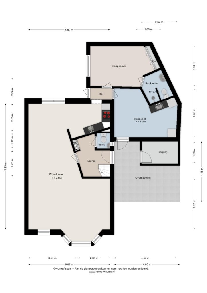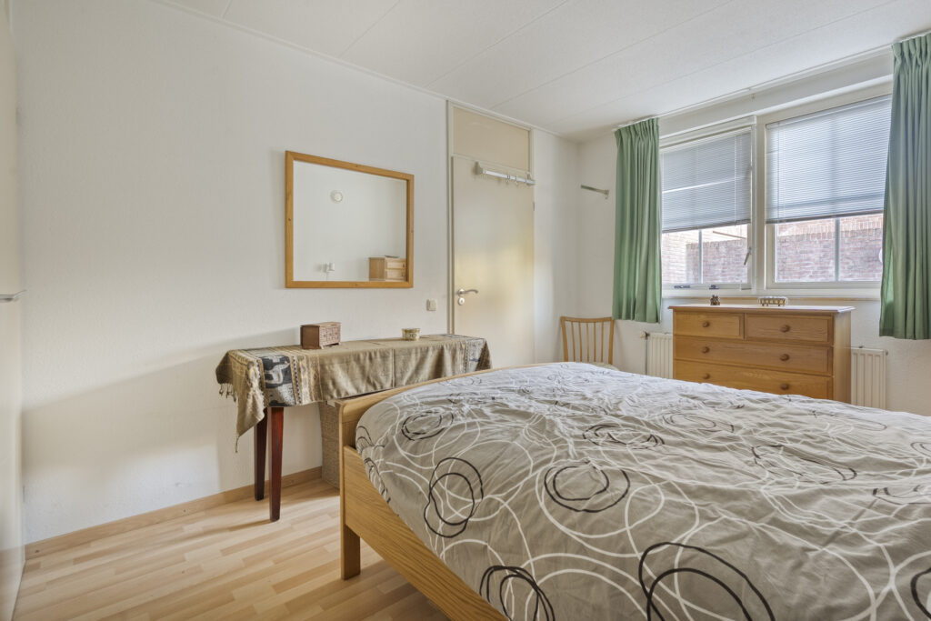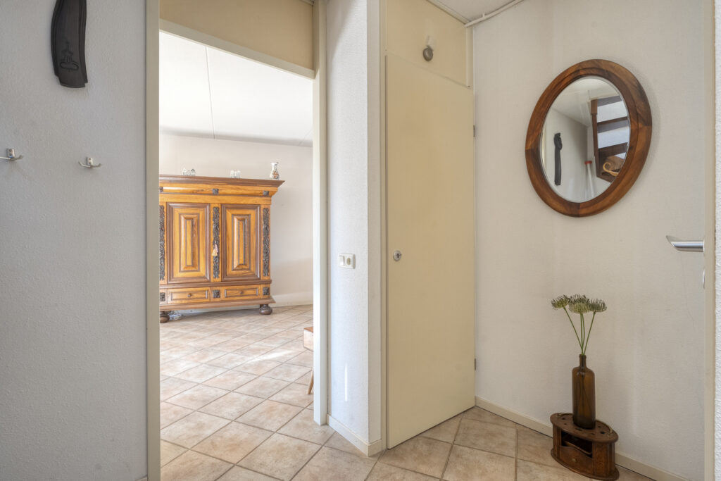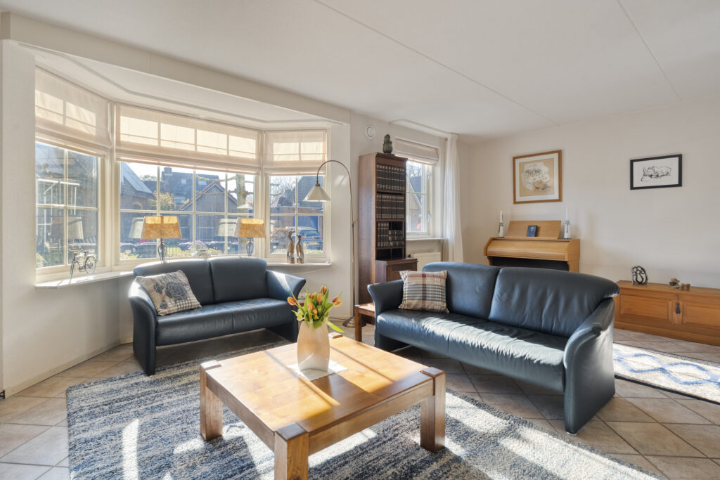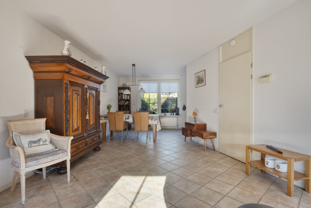 Via de entree heb je toegang tot het toilet, de meterkast en de trapopgang naar de eerste verdieping. De woonkamer bevindt zich aan de voorzijde van de woning en is dankzij de grote raampartijen in de erker prettig licht. De erker is voorzien van screens aan de buitenzijde.