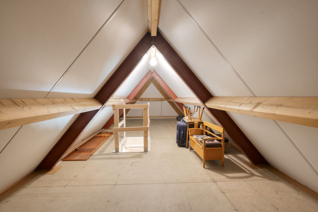 Via een vlizotrap is de vliering bereikbaar, geschikt voor extra bergruimte.