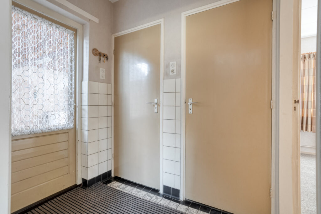 (Tussen)hal met deur naar het toilet, de badkamer, slaapkamer en de bijkeuken. De bijkeuken met CV opstelling en witgoedaansluiting geeft toegang tot de buitenplaats.