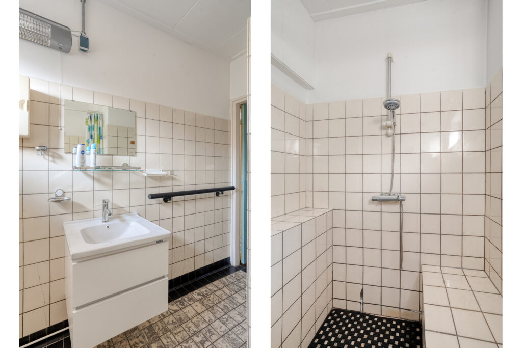 De badkamer is voorzien van een douche en wastafel. De beide slaapkamers beneden hebben een vaste inbouwkast.