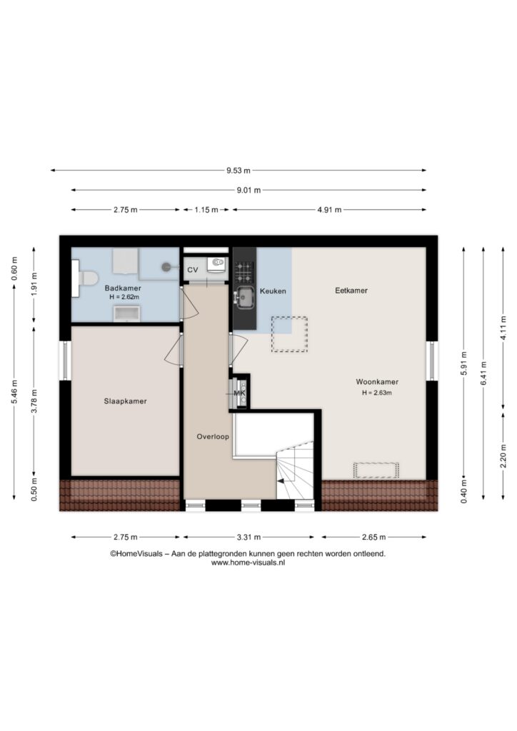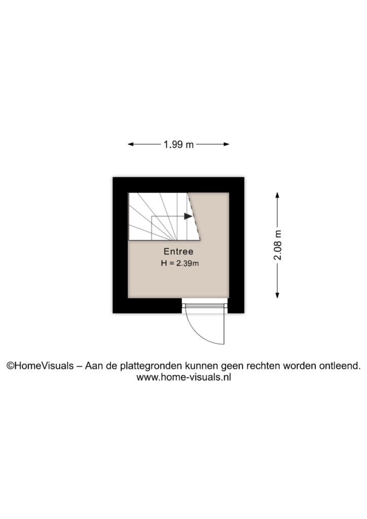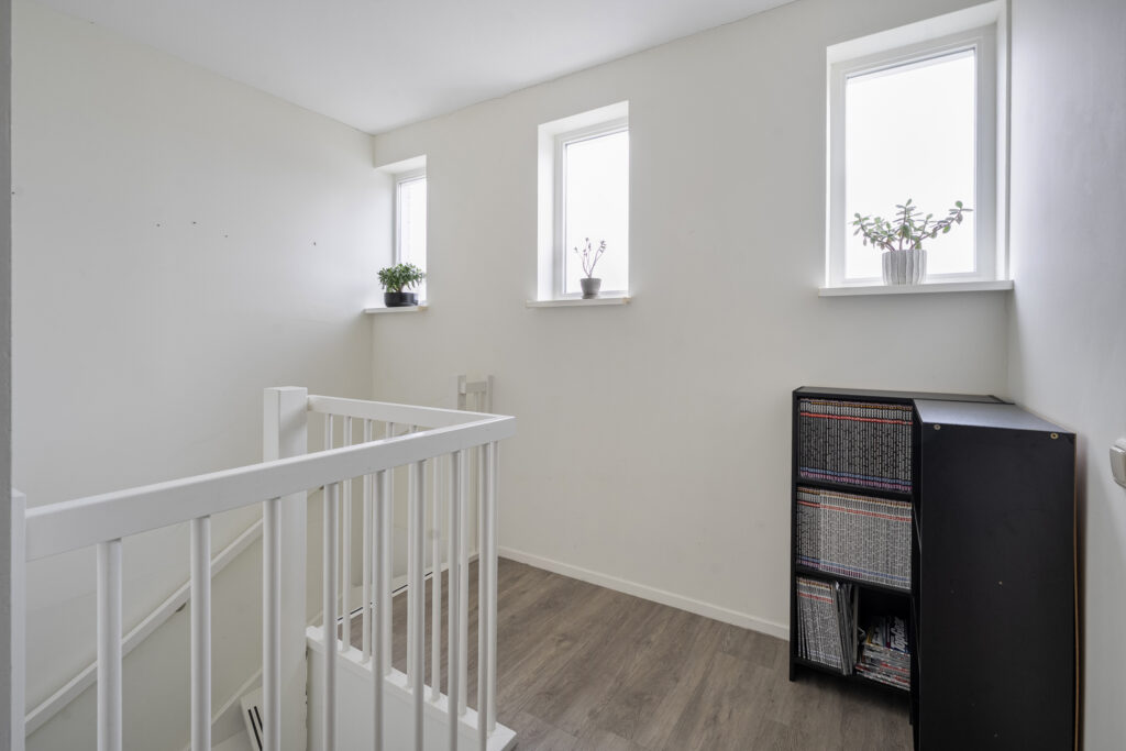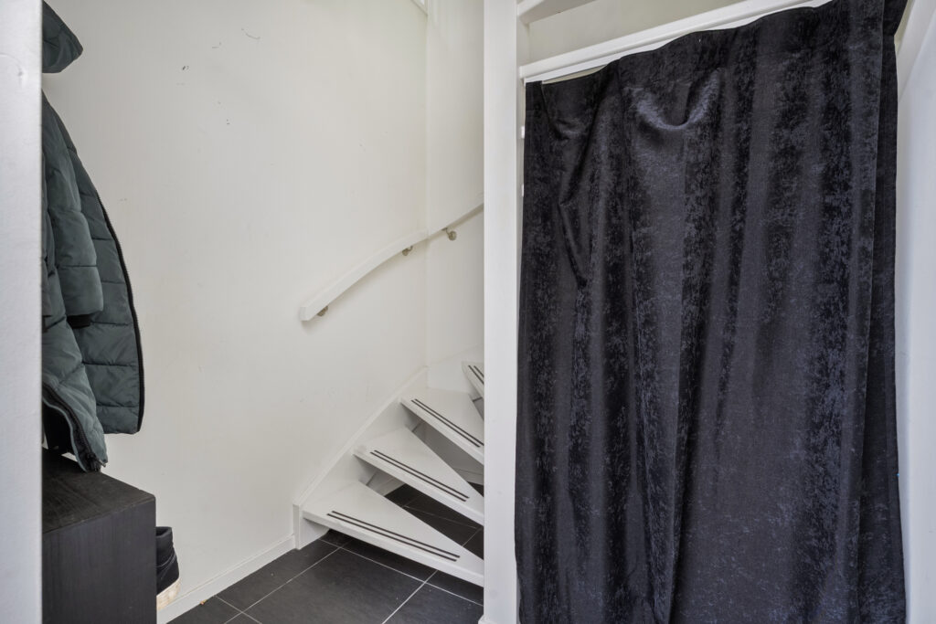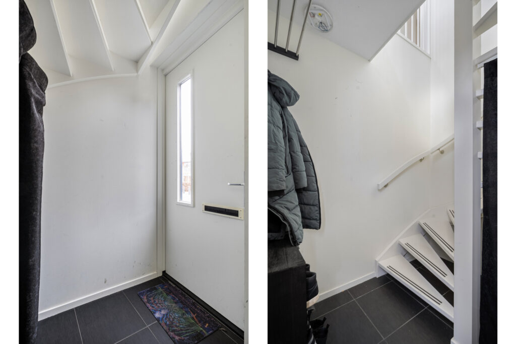 Je komt binnen via de eigen entree met hal, waar ruimte is voor een garderobe. Vanuit hier leidt de trap naar de woonverdieping.
