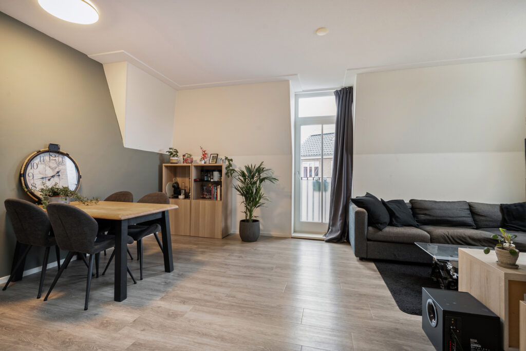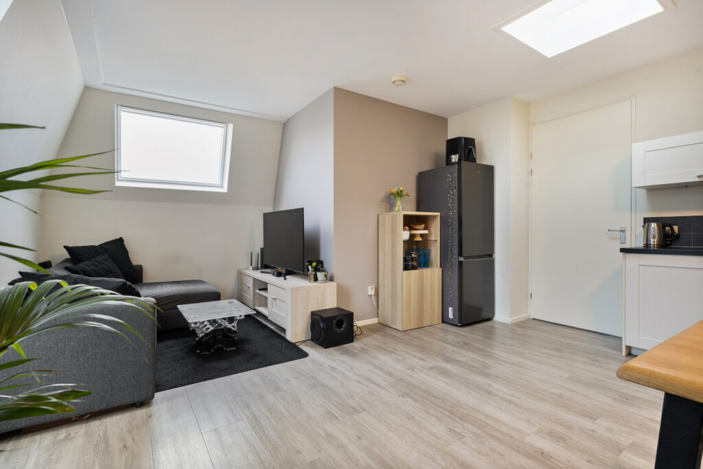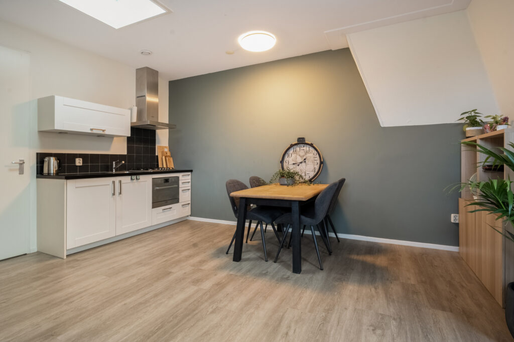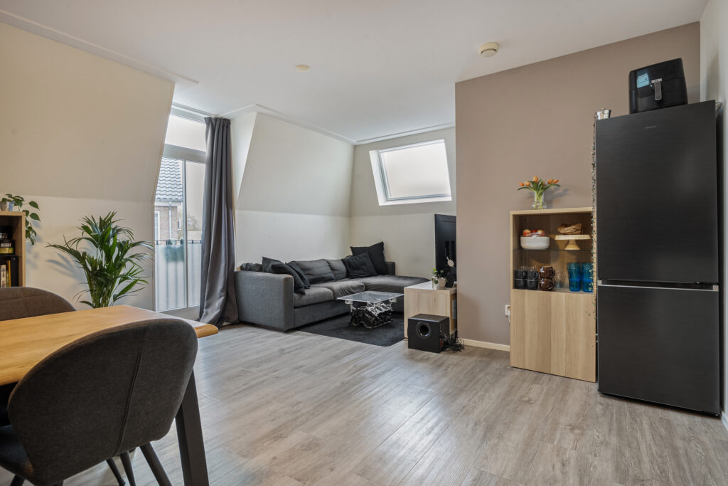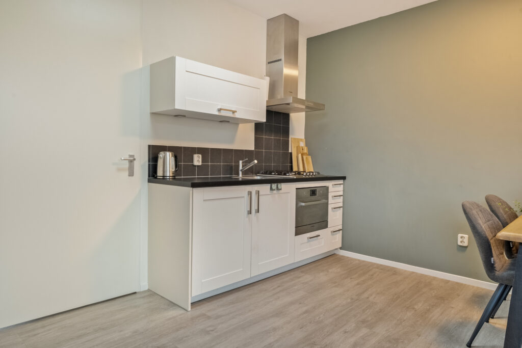 Op de overloop bevinden zich de meterkast en de CV-opstelling. Vanuit de gang heb je toegang tot alle vertrekken. De lichte woonkamer met open keuken valt direct op door de prettige lichtinval en het karakteristieke Franse balkon. De keuken is uitgerust met diverse inbouwapparatuur, waaronder een 4-pits gaskookplaat, koelkast, vaatwasser en een RVS afzuigschouw.
