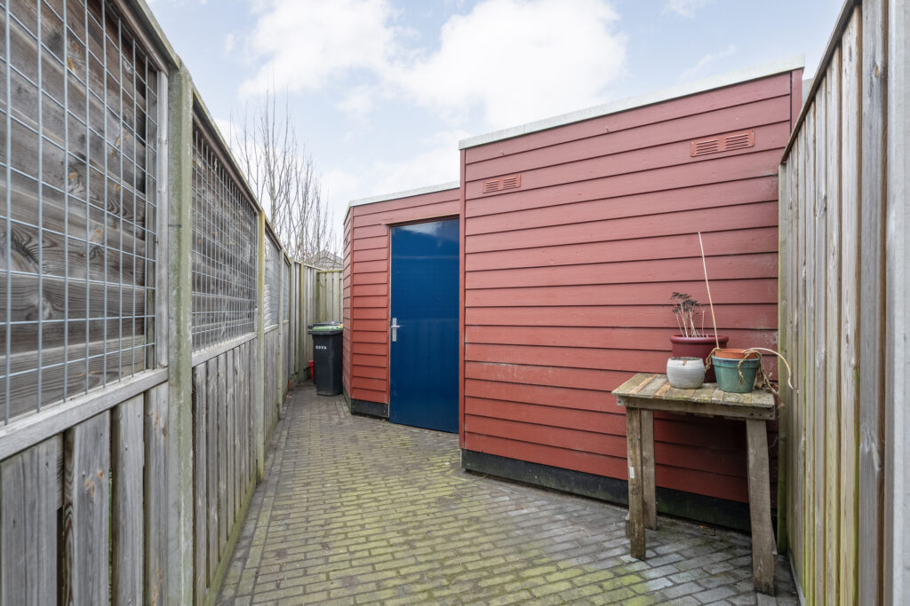 Bij het appartement hoort een vrijstaande houten berging van circa 5,5 m², ideaal voor fietsen en extra opslag.