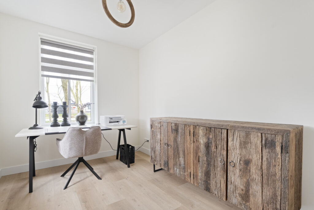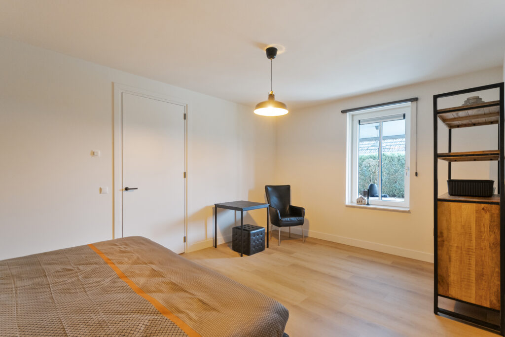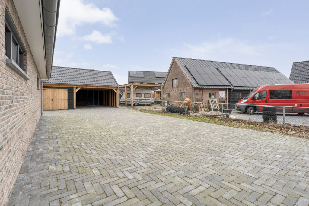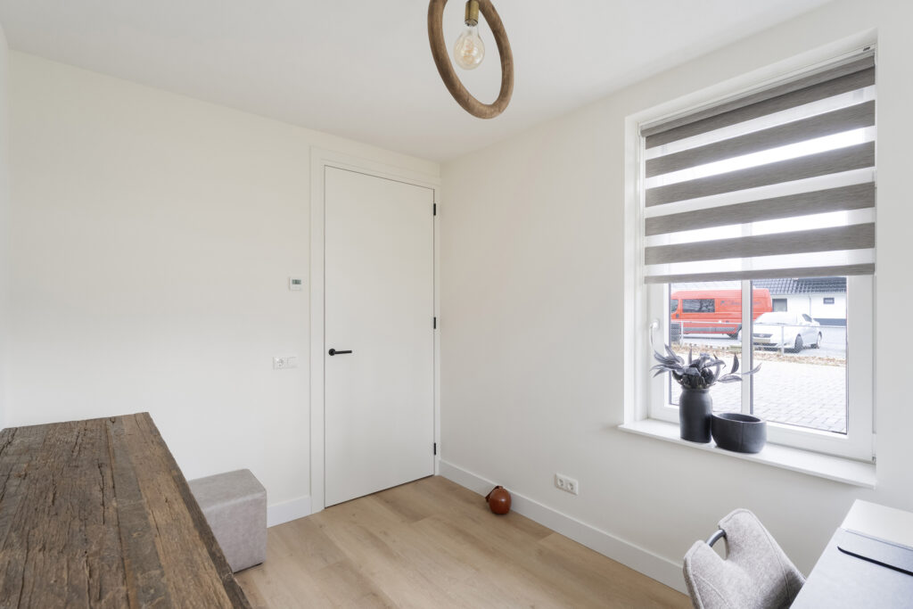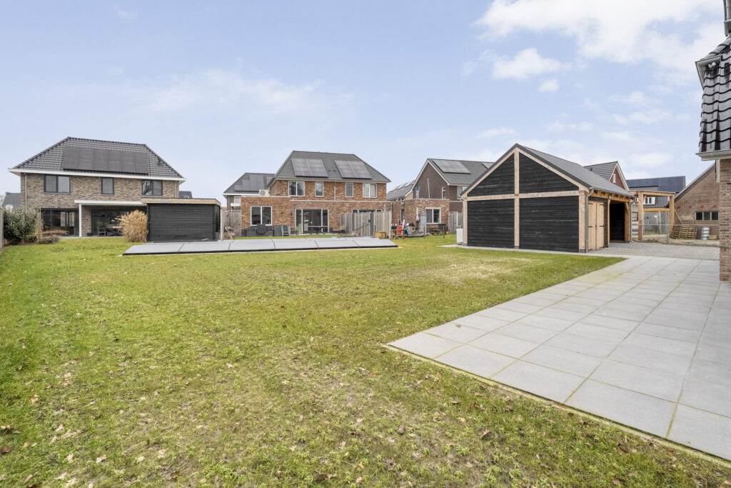 Buiten: ook het buitenterrein is helemaal nieuw en keurig afgewerkt. Voor en naast de woning ligt een groot gazon dat doorloopt naar de achtertuin. Aan de andere zijde is een royale oprit tot je beschikking met nieuw straatwerk. Aan het einde van de oprit tref je een houtenschuur met overkapping aan waar je je elektrische auto overdekt kunt opladen. De schuur is perfect voor de stalling van fietsen en om tuingereedschap in op te bergen.
