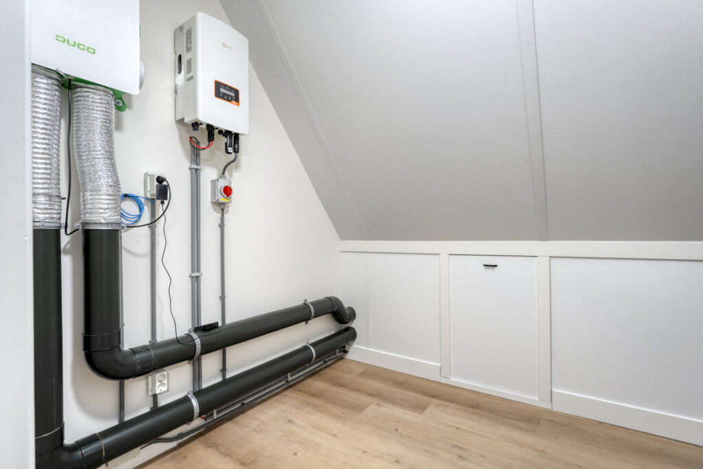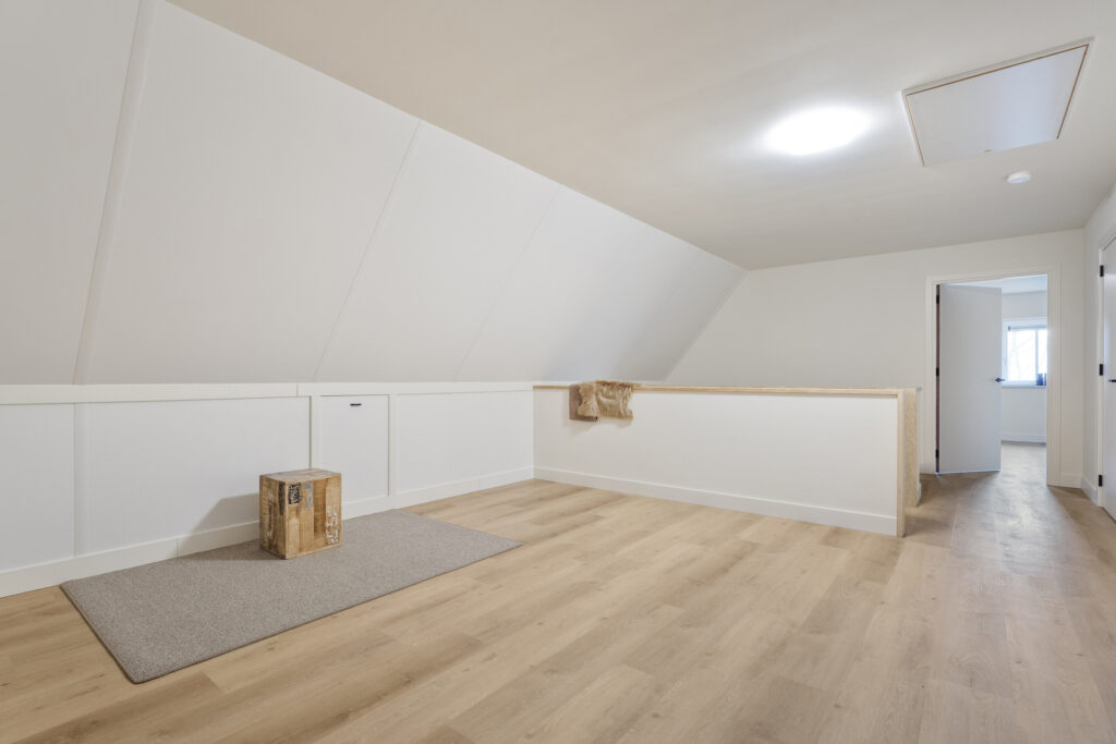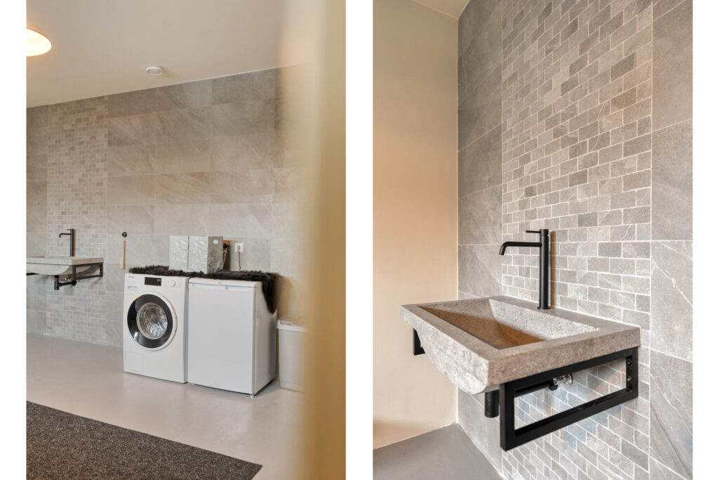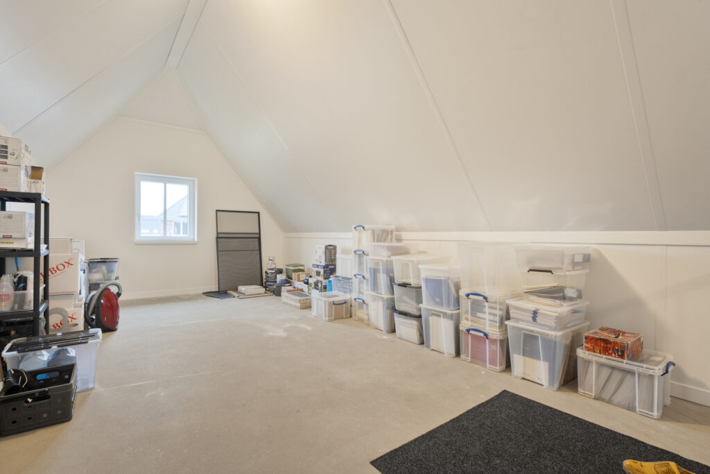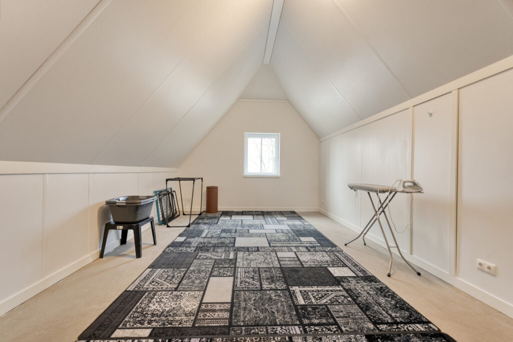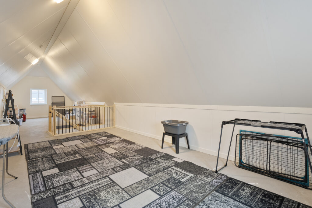 In de berging tref je naast de witgoedapparatuur een spoelbak en een vaste trap naar een tweede zolder aan. Uniek aan de berging is, is dat deze een speciale coating heeft en daarmee vloeistofdicht is. De zolder is voor veel verschillende doeleinden geschikt.