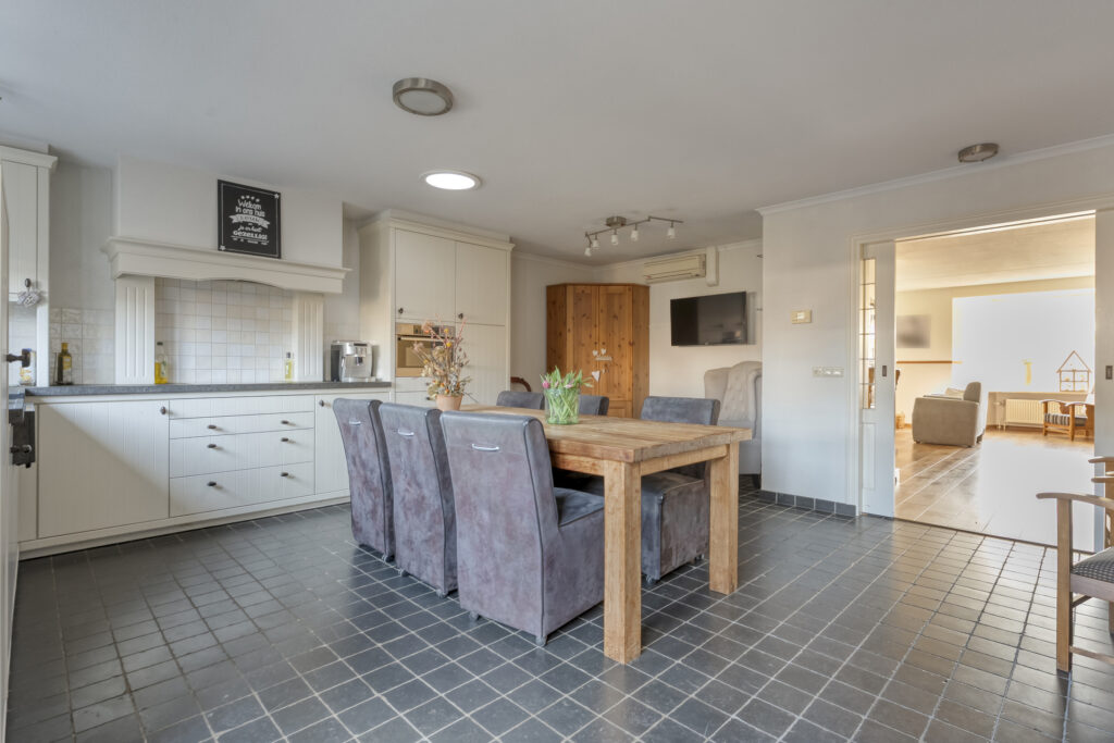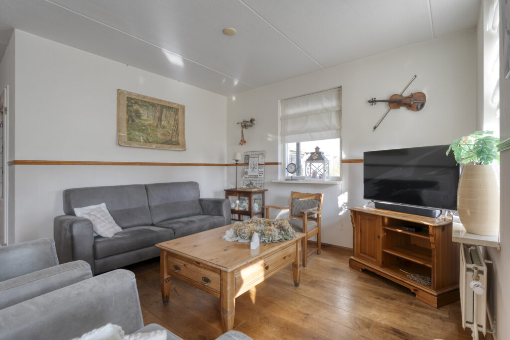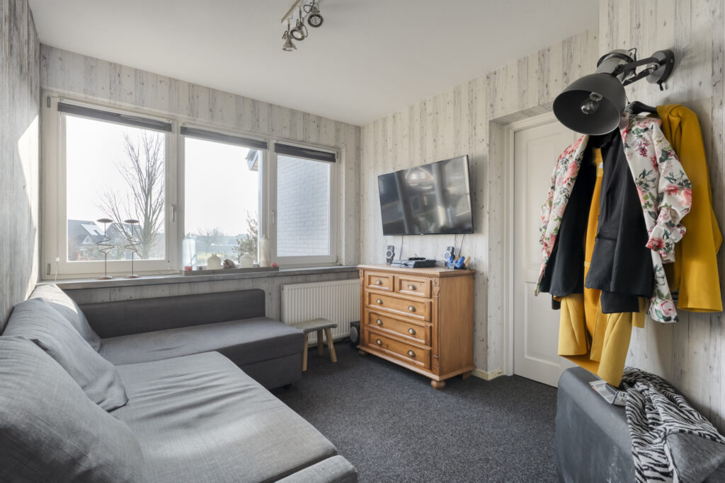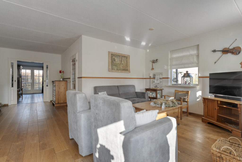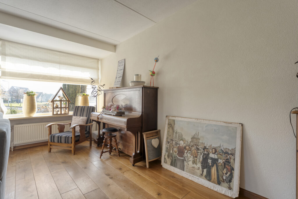 De woonkamer aan de voorzijde is voorzien van een karakteristieke erker die zorgt voor veel lichtinval. Bovendien kijk je vanuit de woonkamer vrij uit over de vijver in het midden van de wijk. De royale woonkeuken aan de achterzijde beschikt over een keukenopstelling in hoekvorm en biedt via openslaande deuren direct toegang tot de achtertuin. De keukenopstelling is voorzien van een gaskookplaat, combi-oven, koelkast en vaatwasmachine.