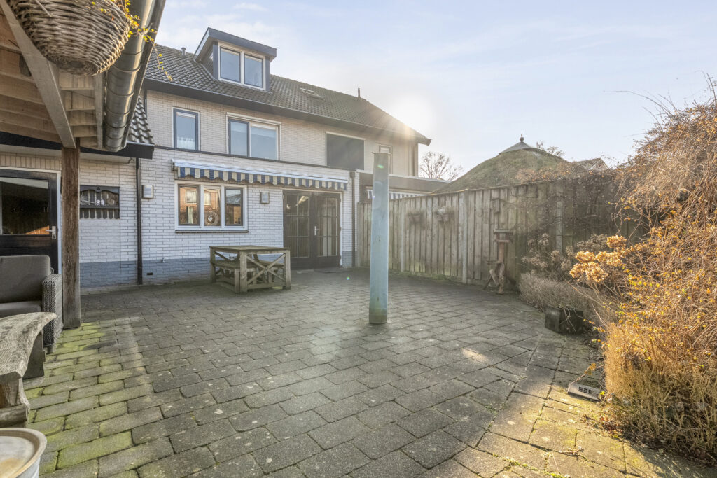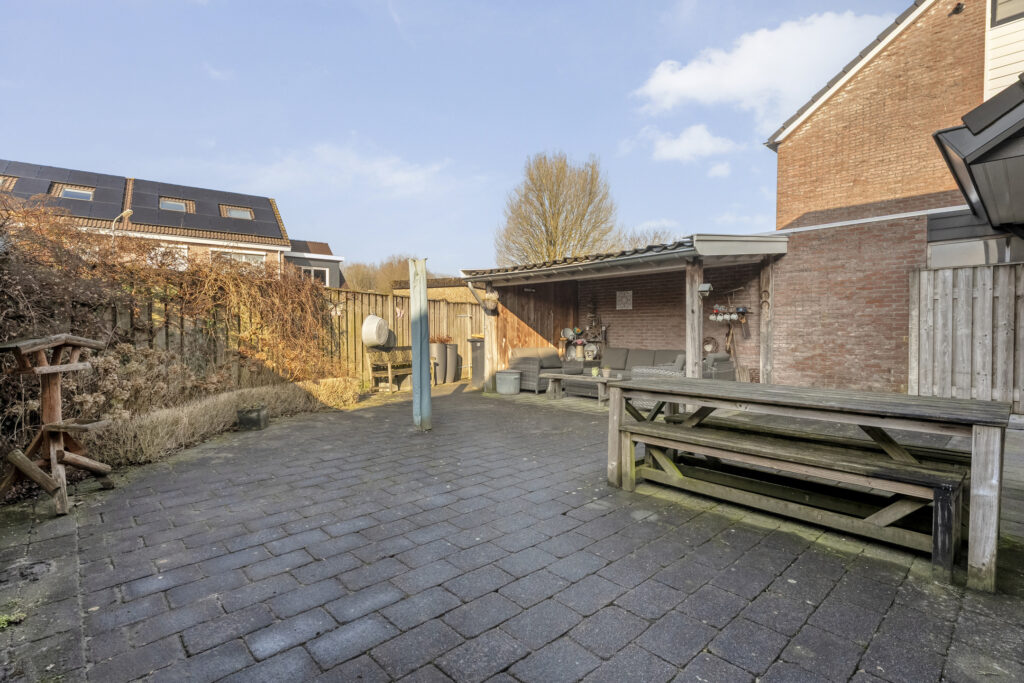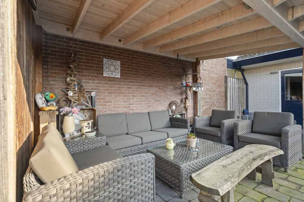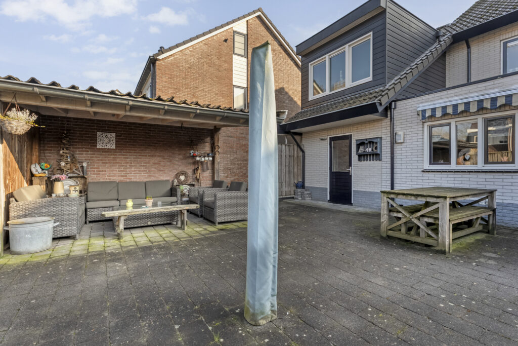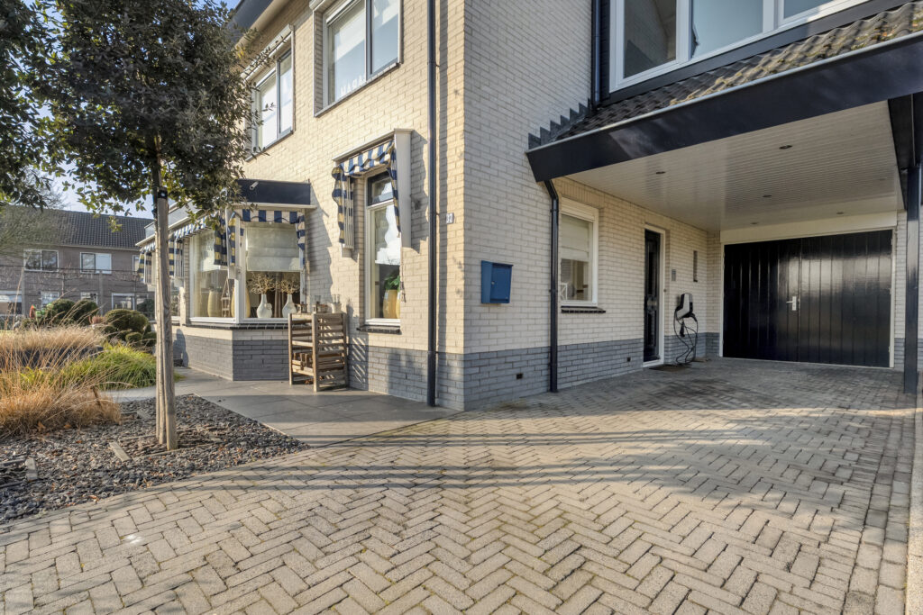Buiten: Voor de woning ligt een keurig onderhouden voortuin met diverse beplanting. Daarnaast tref je de oprit aan waar je de auto overdekt kunt parkeren. De achtertuin is nagenoeg geheel bestraat met achterin de tuin een plantenperk. Daarnaast is er in de achtertuin een overkapping geplaatst waar je heerlijk van het buitenleven kunt genieten.