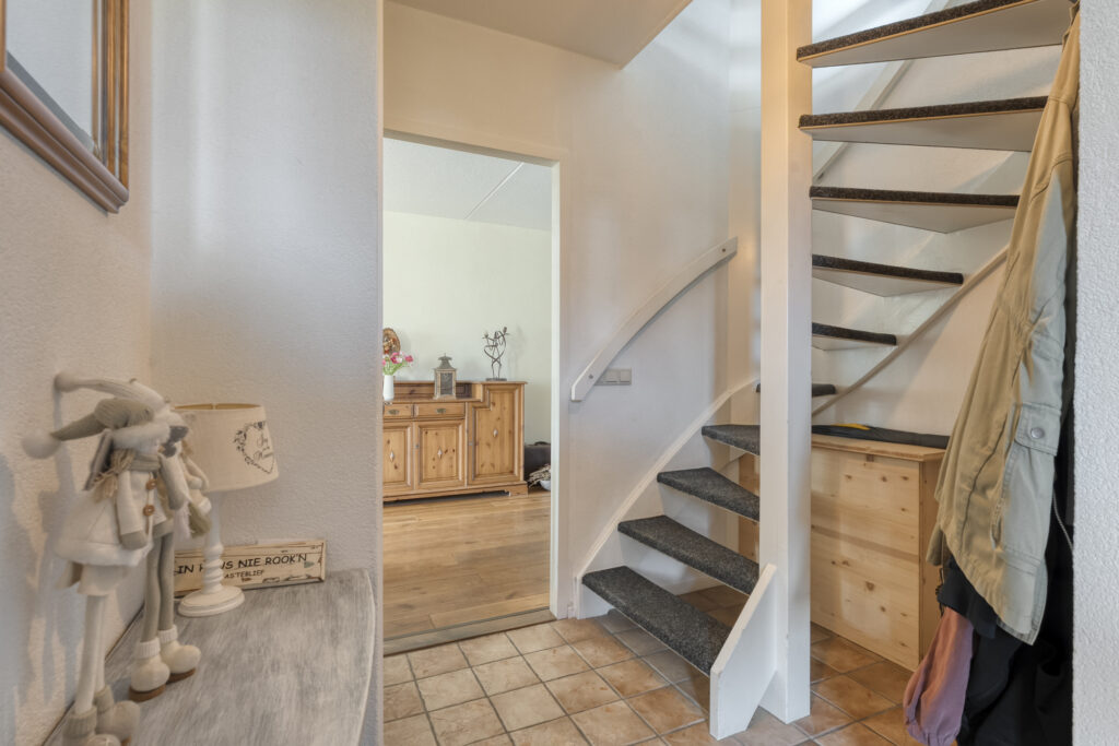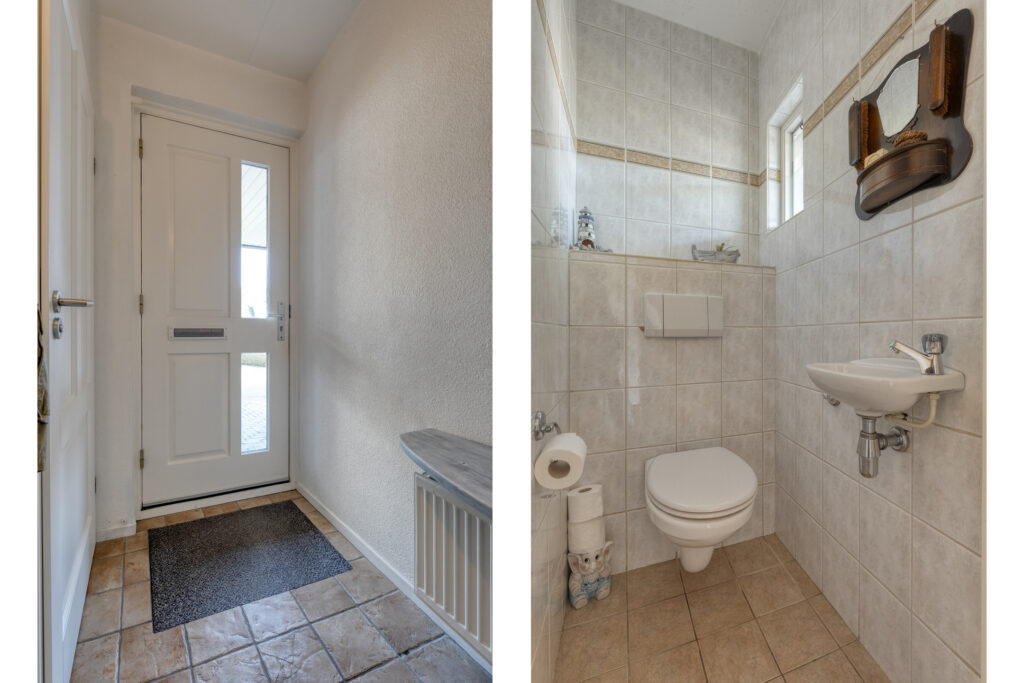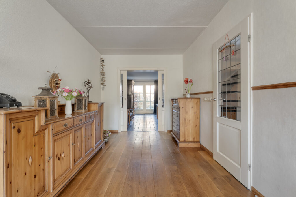 Begane grond: Via de oprit bereik je de overdekte entree met toegang tot de hal. In de hal bevindt zich de meterkast, de trapopgang naar de eerste verdieping en het toilet met fonteintje. Vanuit de hal heb je toegang tot de sfeervolle woonkamer en de ruime woonkeuken.