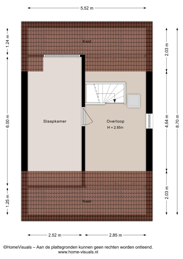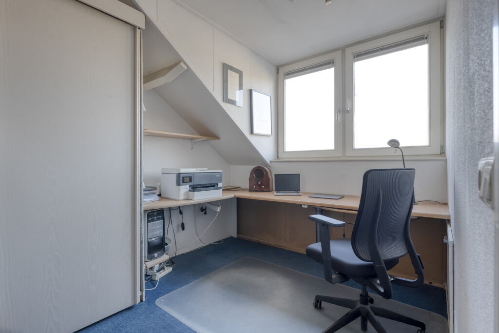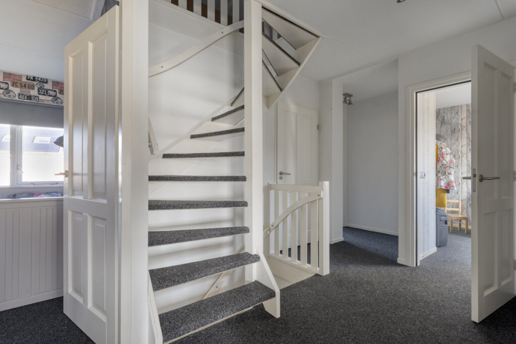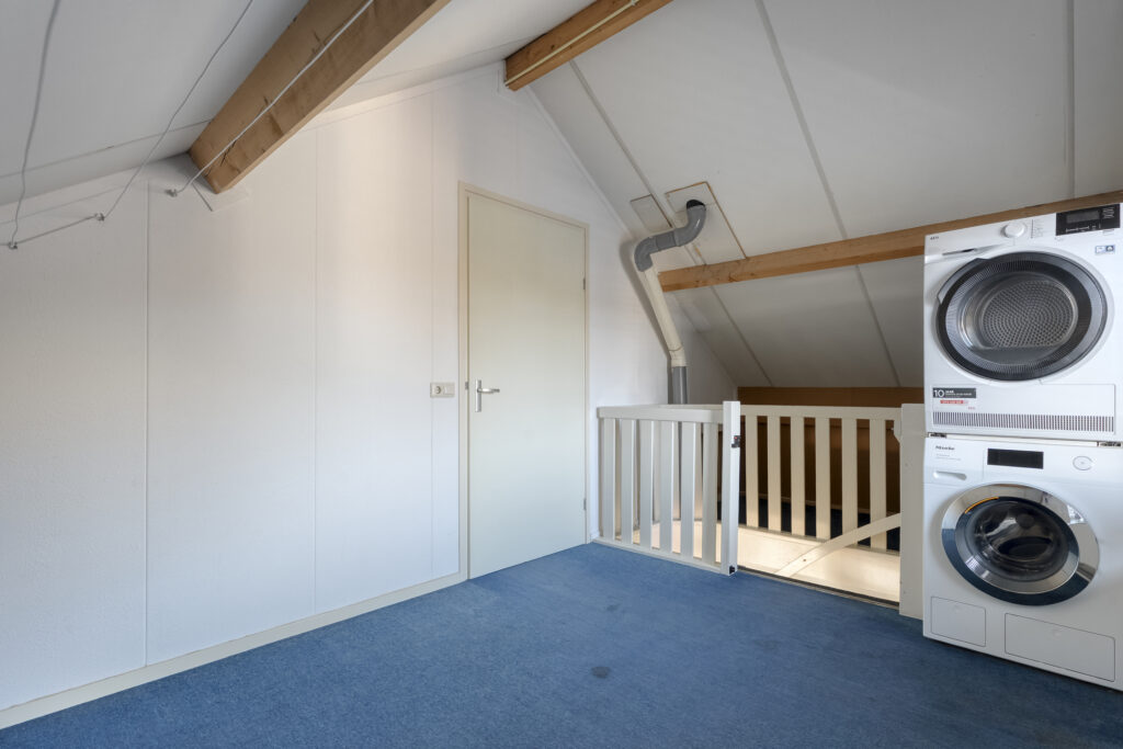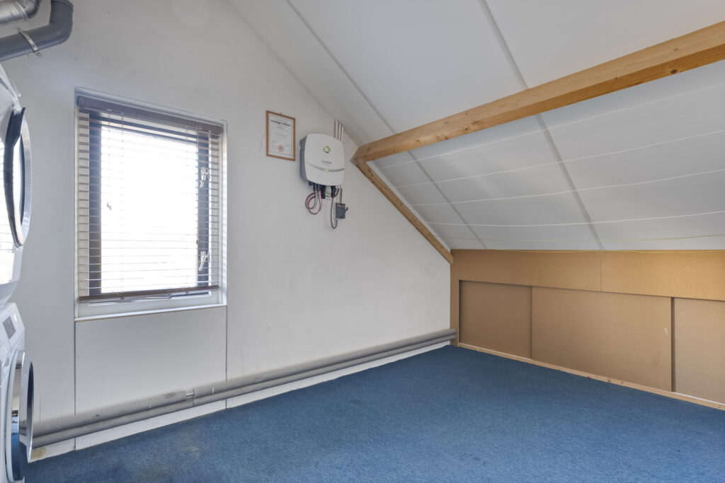 Tweede verdieping: De tweede verdieping is bereikbaar via een vaste trap. Hier tref je een ruime overloop aan met een zijraam voor natuurlijk licht. Vanaf de overloop is er toegang tot de zesde slaapkamer, die dankzij de dakkapel een prettige lichtinval geniet. Zowel op de overloop als in de slaapkamer is er achter de knieschotten aan beide zijden volop bergruimte gecreëerd.
