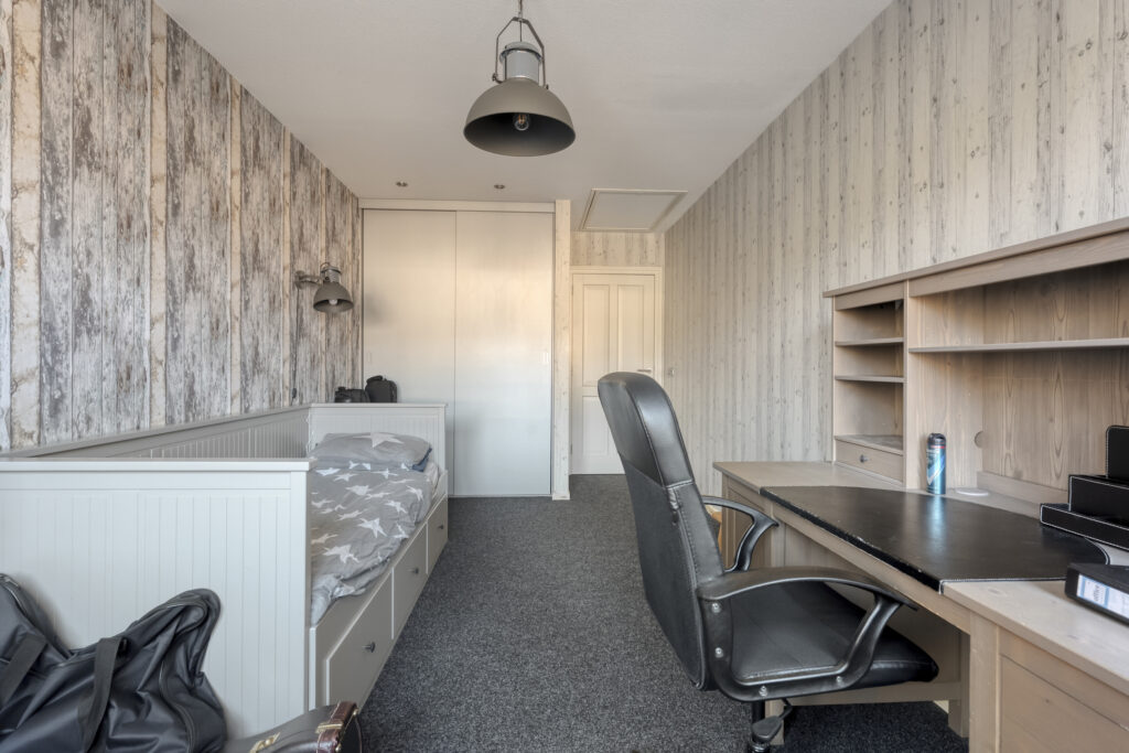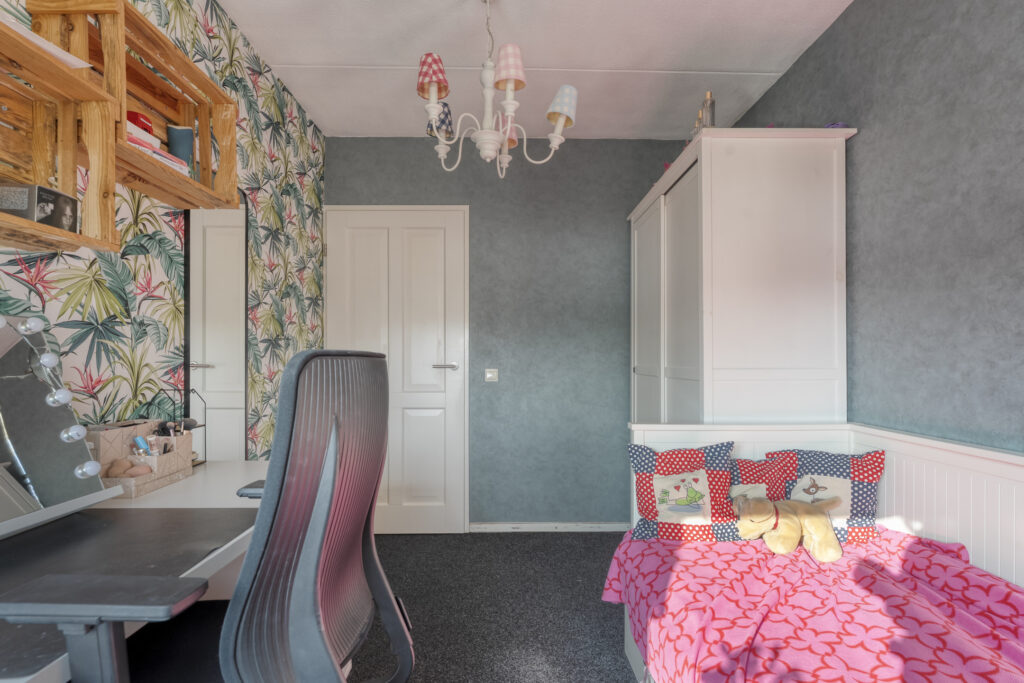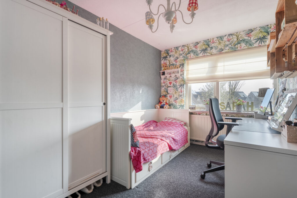 Aan de voorzijde bevinden twee slaapkamers, waarvan de grootste is voorzien van een vaste kast met schuifdeuren. Aan de achterzijde is de badkamer en een derde slaapkamer gesitueerd welke eveneens over een vaste kast beschikt. In de opbouw van de garage zijn twee extra slaapkamers gerealiseerd, welke dankzij de dakkapellen extra ruim zijn geworden. Beide beschikken ze over een vaste kast met schuifdeuren en de kamer aan de achterzijde is tevens voorzien van een vlizotrap naar een bergzolder.