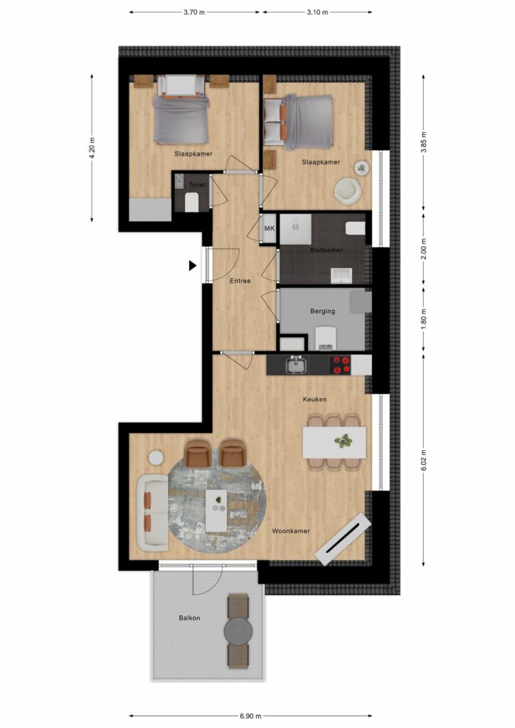 – Stijlvol appartement met kookeiland;