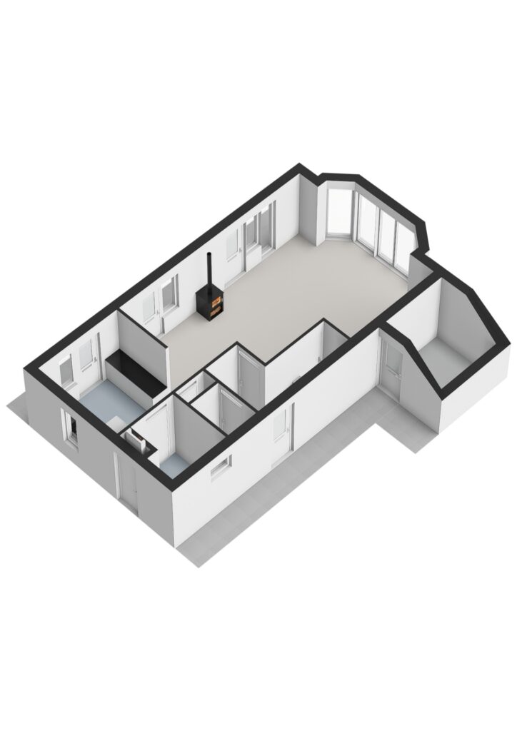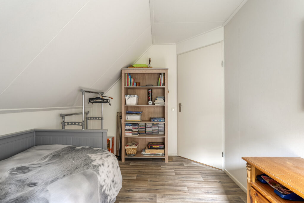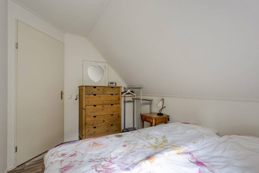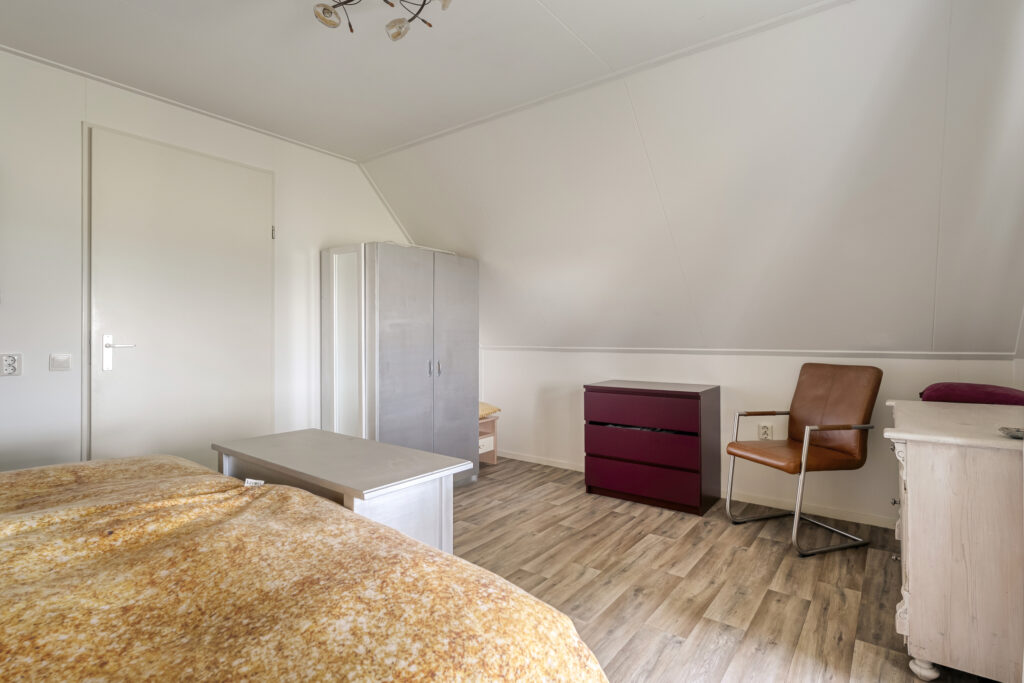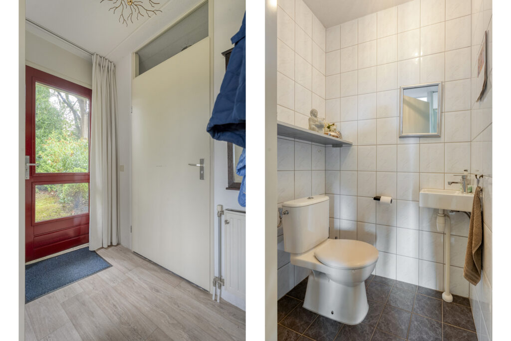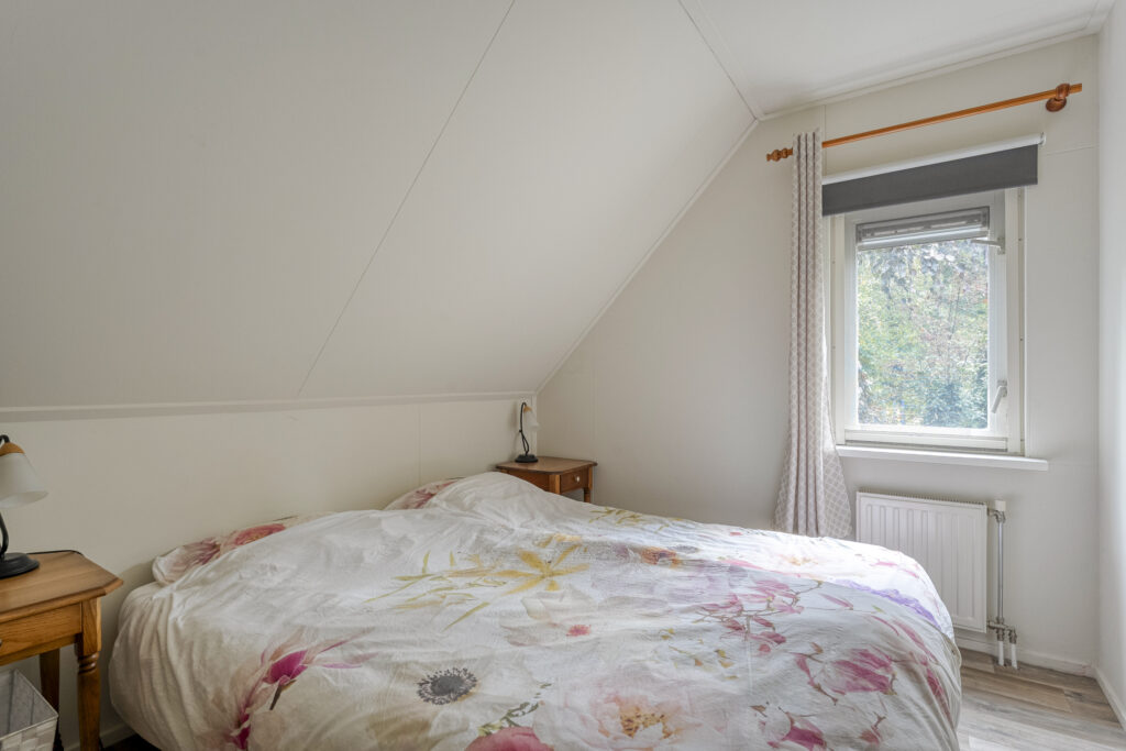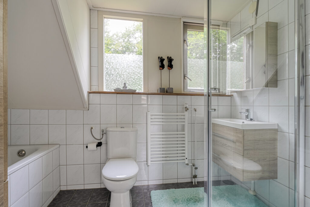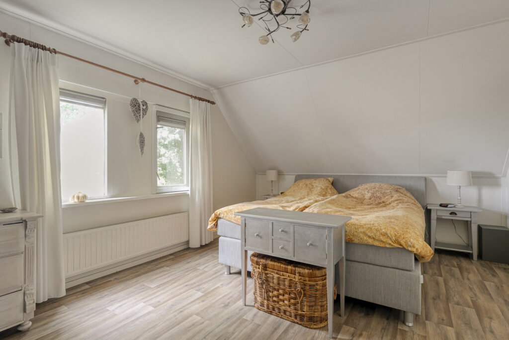 Entree/hal met toegang tot het toilet, de woonkamer en trapopgang naar de eerste verdieping. De lichte woonkamer biedt dankzij de erker een prachtig uitzicht over de omliggende landerijen. De sfeervolle gashaard en de aanwezigheid van horren dragen bij aan een comfortabel verblijf. Vanuit de woonkamer is een trappenkast te bereiken wat voor handige opbergruimte zorgt. Aan de woonkamer grenst de gemoderniseerde open keuken welke is voorzien van verschillende inbouwapparatuur welke ca. 5 jaar geleden is vervangen. De keuken beschikt over een inductie kookplaat met afzuigkap, koelkast, spoelbak, vaatwasser en combimagnetron. Verder is er nog een koffiezetapparaat en waterkoker aanwezig. Vanuit de keuken is de bijkeuken met witgoedaansluiting te bereiken. De bijkeuken is eenvoudig om te bouwen tot 2e badkamer, waardoor slapen en baden op de begane grond te realiseren is.