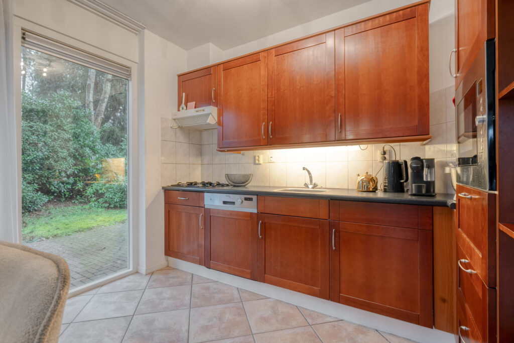 Begane grond: hal, badkamer met toilet, slaapkamer, woonkamer met open haard en erker, open keuken voorzien van vaatwasser, kookplaat, afzuigkap, koelkast en combi magnetron, een buiten af te sluiten berging voor fietsen, tuinmeubelen en/of tuingereedschap.
