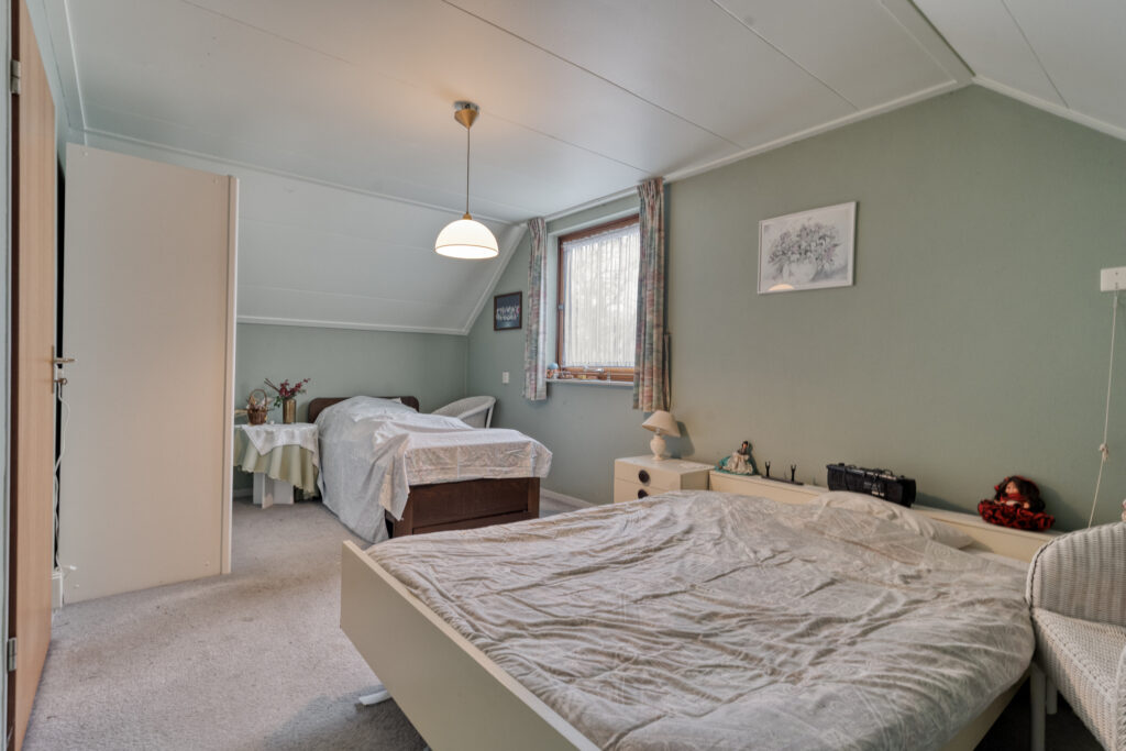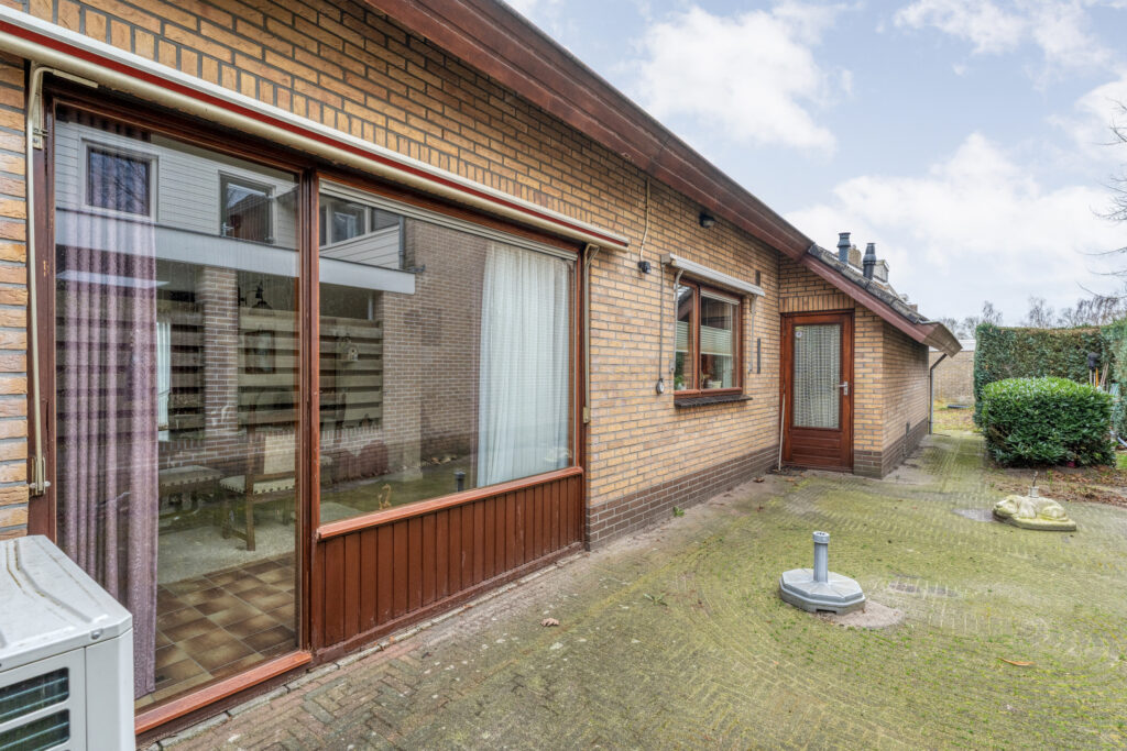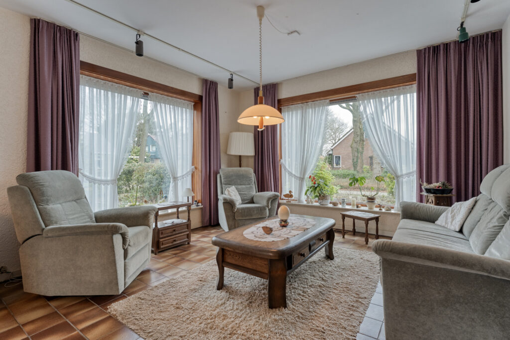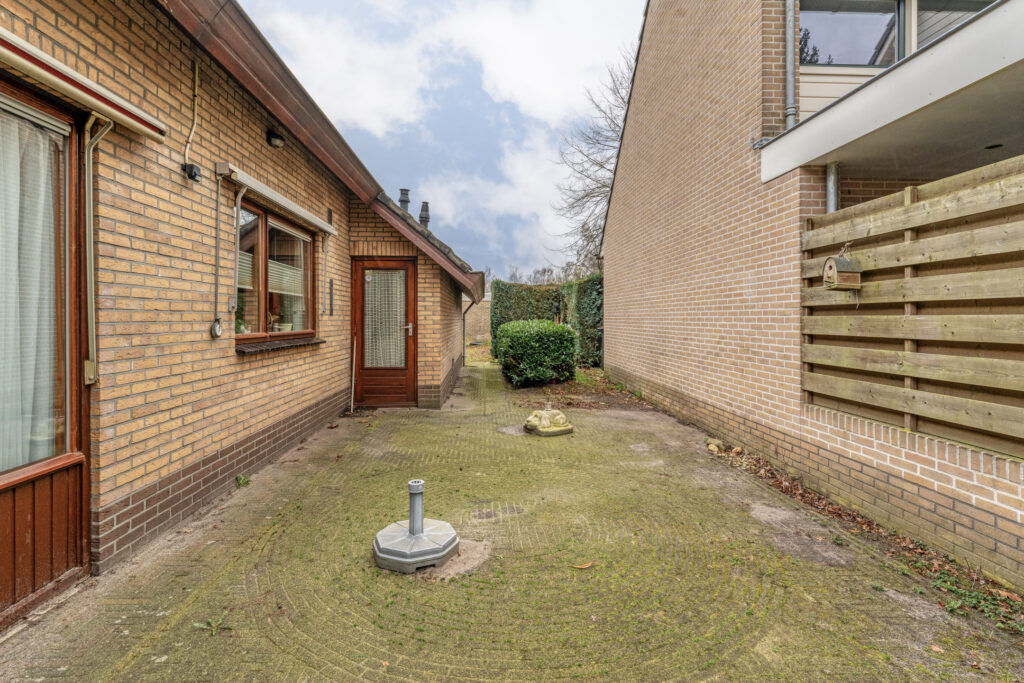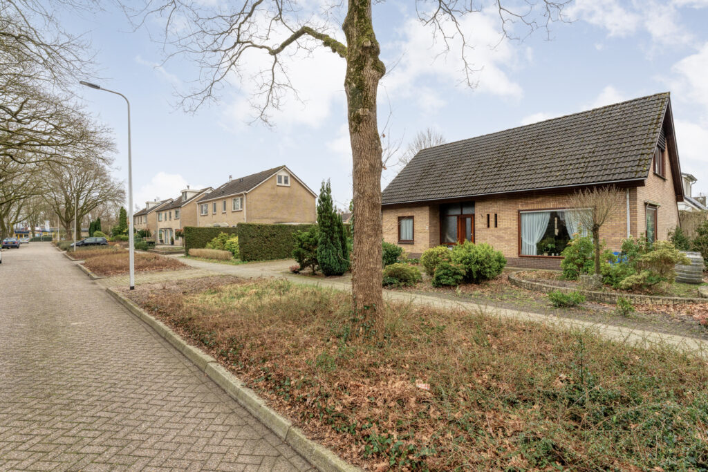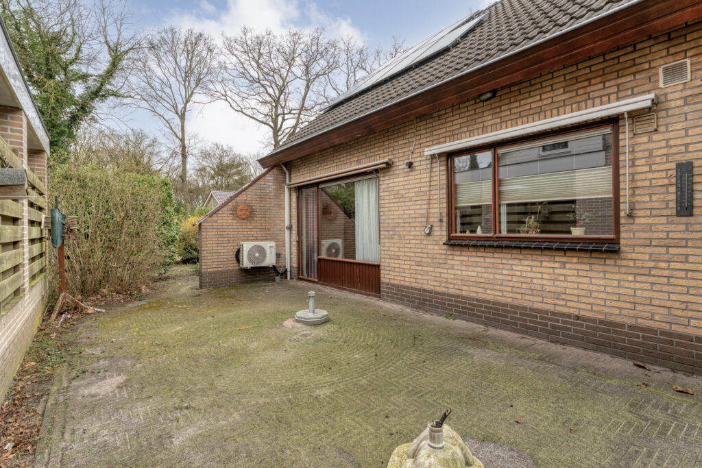 Buiten: rondom de woning ligt een flinke tuin met aan de voorzijde een oprit met ruimte voor twee auto’s. Voor- en rechts van de woning is de tuin voorzien van diverse beplanting en achter groot terras gelegen.