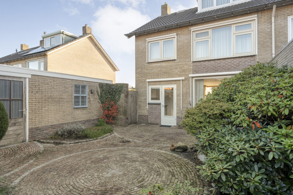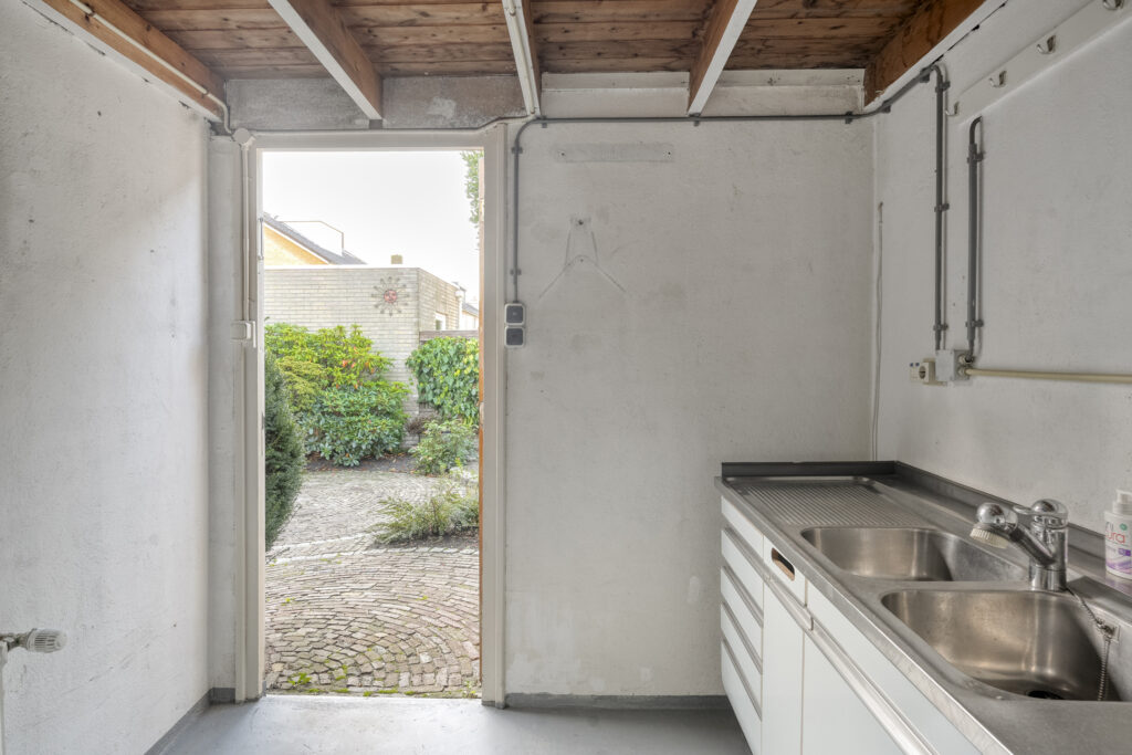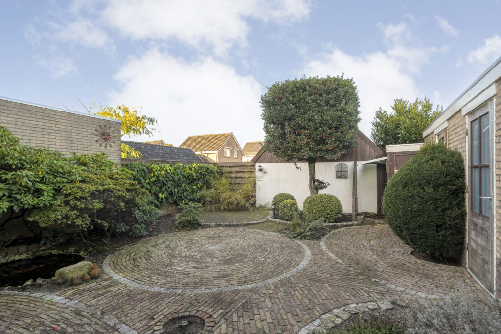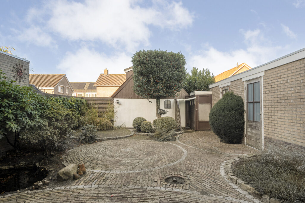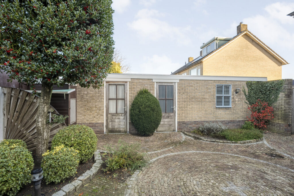 Buiten: Nette achtertuin op het noordwesten met garage, berging en poort naar de oprit. In de berging is een keukenblok aanwezig en is de CV ketel (Intergas 2023) geïnstalleerd. Aan de achterzijde van de woning hangen zonneschermen. De tuin is beschut en hierdoor ervaar je veel privacy. De oprit is ruim genoeg voor het parkeren van 2 a 3 auto’s.