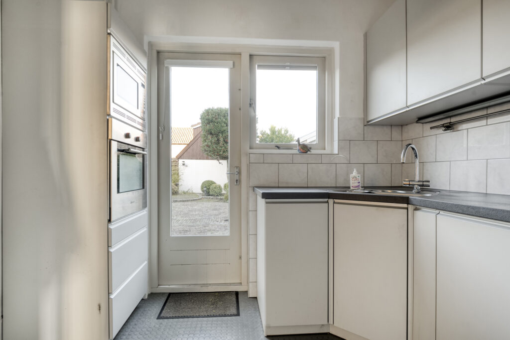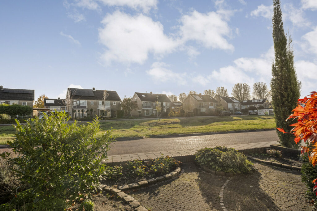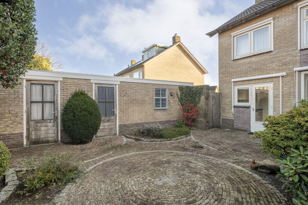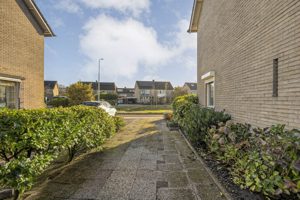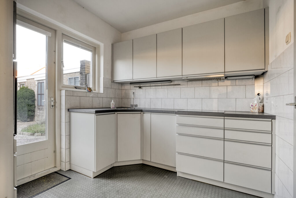 Buiten: Nette achtertuin op het noordwesten met garage, berging en poort naar de oprit. In de berging is een keukenblok aanwezig en is de CV ketel (Intergas 2023) geïnstalleerd. Aan de achterzijde van de woning hangen zonneschermen. De tuin is beschut en hierdoor ervaar je veel privacy. De oprit is ruim genoeg voor het parkeren van 2 a 3 auto’s.