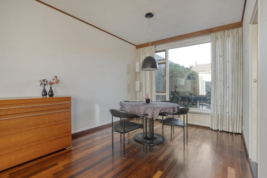 Begane grond: Entree/hal met trapopgang naar de eerste verdieping en toegang tot het toilet, meterkast, keuken en de woonkamer. Lichte doorzonwoonkamer met fraaie parketvloer en doorloop naar de eetkamer en keuken. De dichte keuken heeft een hoekopstelling met inbouwapparatuur zoals een oven, magnetron, vaatwasser, inductie kookplaat, afzuigkap en spoelbak. Via de keuken is de achtertuin bereikbaar, hier vind je de vrijstaande garage met berging/bijkeuken.
