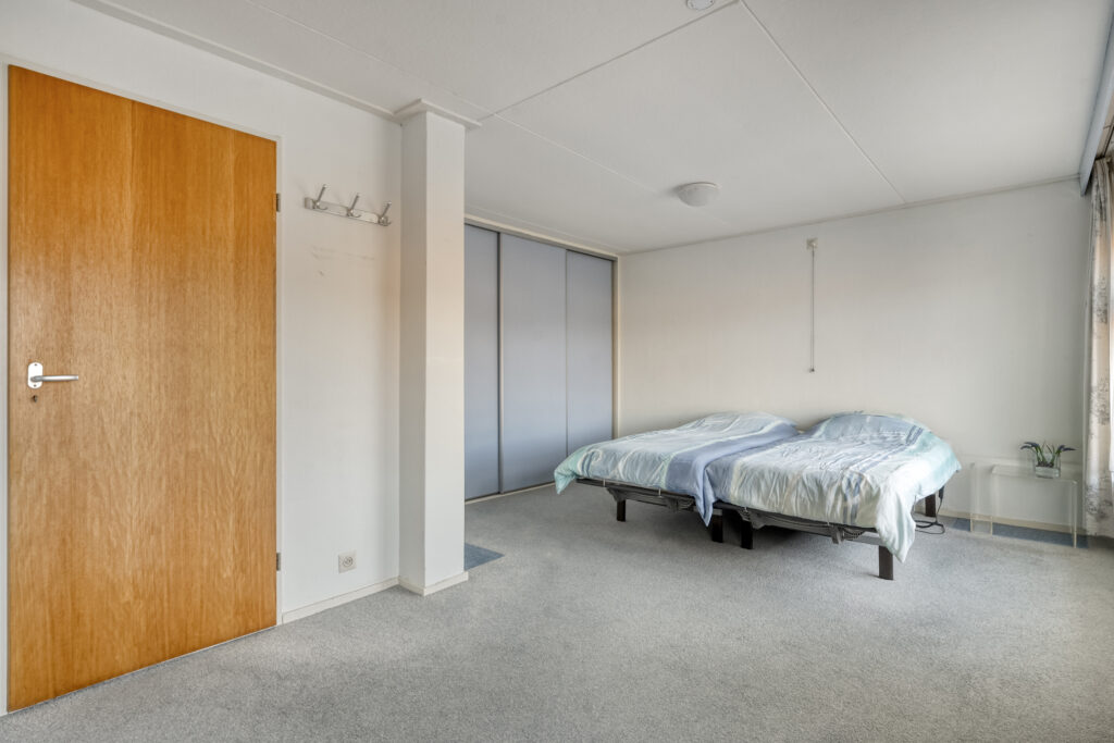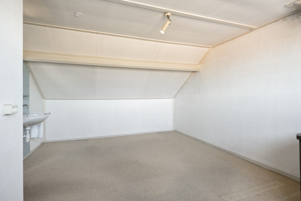 Achter de knieschotten is nog bergruimte aanwezig. De dakkapel is voorzien van kunststof kozijnen.