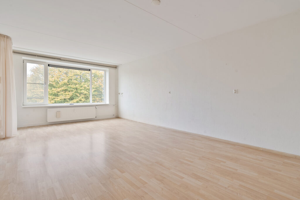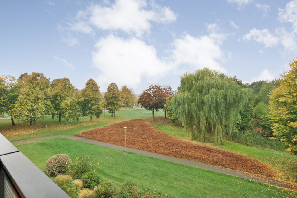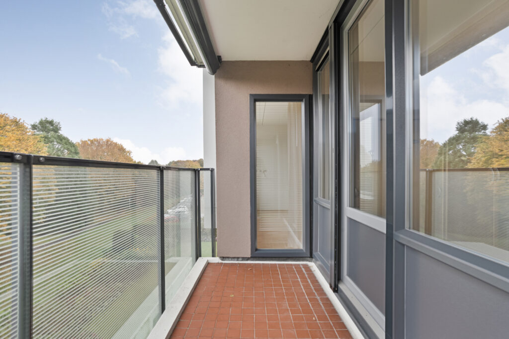 Indeling: Via de entree is een kastruimte, het toilet, de keuken en de woonkamer te bereiken. De woonkamer en de slaapkamer zijn voorzien van grote raampartijen waardoor de beide kamers veel lichtinval hebben. Via één van de kamers is het balkon te bereiken. Vanaf het balkon heb je prachtig uitzicht op de grote vijver. De badkamer is gelegen naast de slaapkamer en geeft ook toegang tot het toilet. De badkamer is voorzien van een douche, enkele wastafel en de witgoedaansluiting.