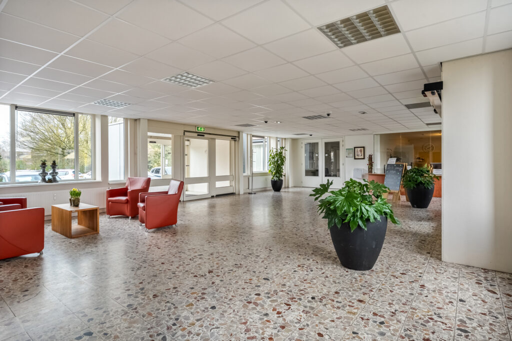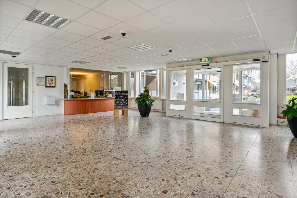 Begane grond appartementencomplex Residentie “De Stadshaghen”: Middels meerdere ingangen komt u het complex binnen met ruime aankomsthal en receptie. Via de lift of trap kunt u alle verdiepingen bereiken. Ook het souterrain, waar zich alle bergingen bevinden.