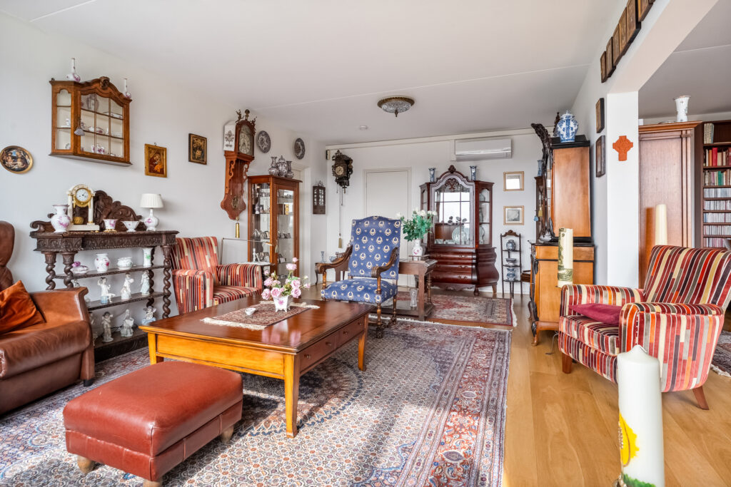 Appartement: Via de galerij bereikt u de voordeur van het appartement. Op de gang naast de voordeur bevindt zich de meterkast en een bezemkast. De hal geeft toegang tot het toilet, de berging, de keuken en de woonkamer. De keuken is in 2022 vernieuwd en voorzien van inductiekookplaat, afzuigkap, vaatwasser, spoelbak en koelkast met vriesvak. De ruime woonkamer is door de ruime raampartijen een heerlijke leefruimte met prachtig uitzicht over de rivier de Vecht. Aan de ene zijde bevindt zich de zitruimte, waar de airco zorgt voor extra comfort. Aan de andere zijde bereikt u de slaapkamer met balkon. Vanuit de slaapkamer is tevens de badkamer toegankelijk. De badkamer is voorzien van een wastafelmeubel, een douche en de wasmachineaansluiting.