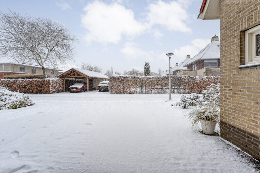 Buiten: de voortuin van de woning is keurig onderhouden en op de oprit is er parkeergelegenheid voor twee tot drie auto’s.