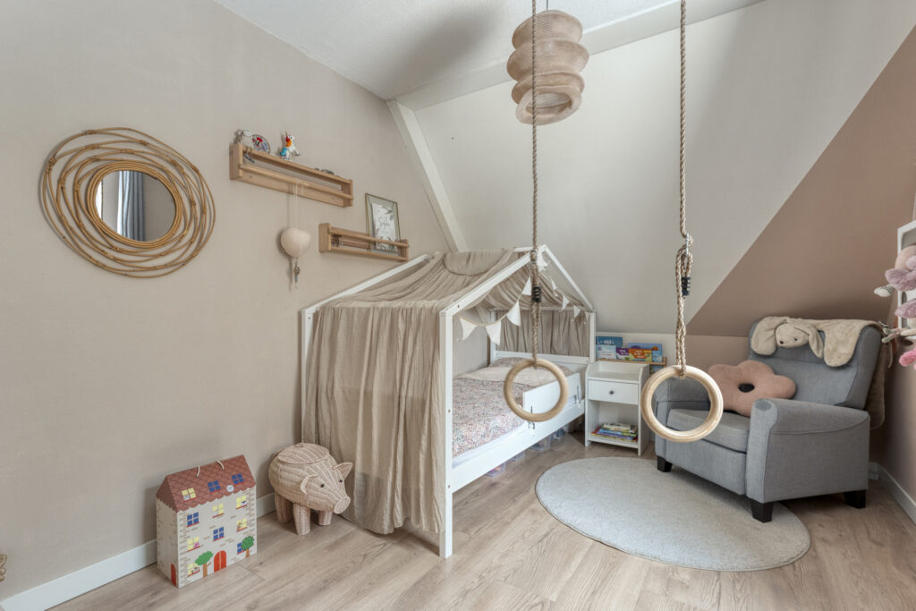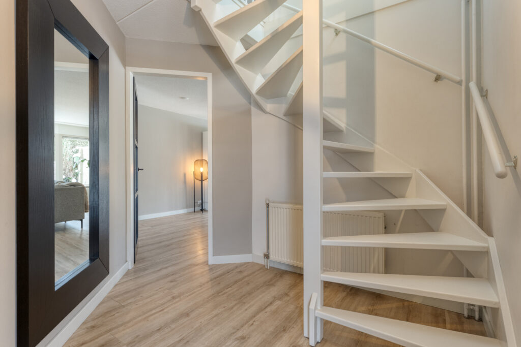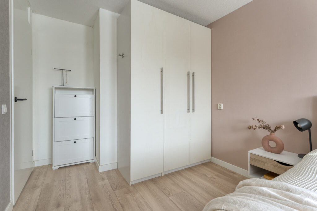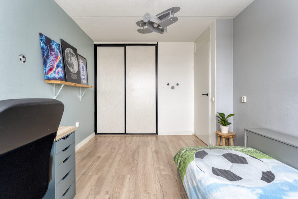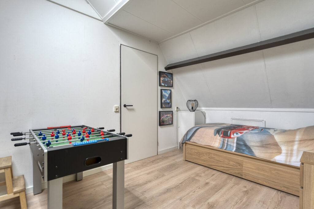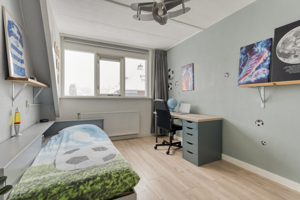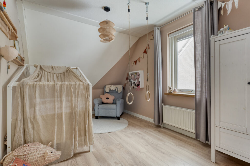 Tweede verdieping: de tweede verdieping is middels een vaste trap te bereiken die je naar de ruime overloop leidt. De trap is recentelijk van beneden tot boven geschilderd. Op de overloop tref je een knus zitje en de CV-combiketel (uit 2025) aan en er is toegang tot de riante vierde slaapkamer. Net als de eerste verdieping beschikt deze slaapkamer over een airco-installatie die zowel kan koelen als verwarmen. Daarnaast is er zowel in de slaapkamer als de overloop veel bergruimte achter de knieschotten tot je beschikking. Bovendien is er een praktische vliering aanwezig.