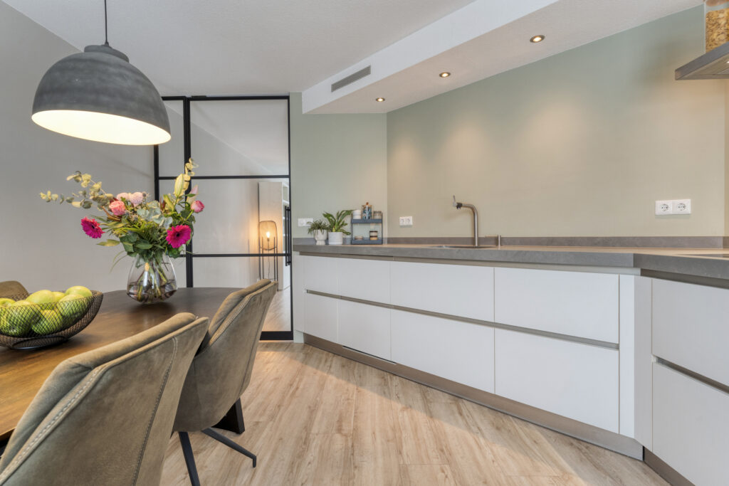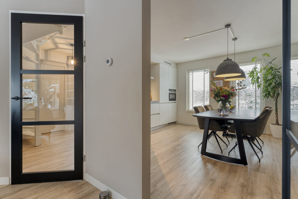 Begane grond: entree/hal met de meterkast, het toilet met fonteintje en de trapopgang naar de eerste verdieping. Vanuit de hal is er toegang tot de garage en de royale tuingerichte woonkamer. Bij binnenkomst in de woonkamer word je verrast door de grote hoeveelheid daglicht en het rustige zicht naar de privacy-volle achtertuin. Het formaat van de woonkamer biedt volop ruimte voor een gezellig zitgedeelte. Een heerlijke plek om echt tot rust te komen na een dag werken. De prachtige taatsdeur biedt toegang tot de keuken, waar een strakke keukenopstelling is gesitueerd. Bovendien is hier voldoende ruimte voor een grote eettafel om gezellig aan te tafelen. De keukenopstelling beschikt over een inductiekookplaat, combioven, koelkast, vriezer en een vaatwasser. Daarnaast is er volop berg- en werkruimte tot je beschikking.