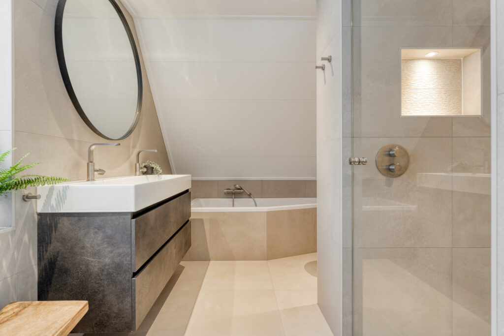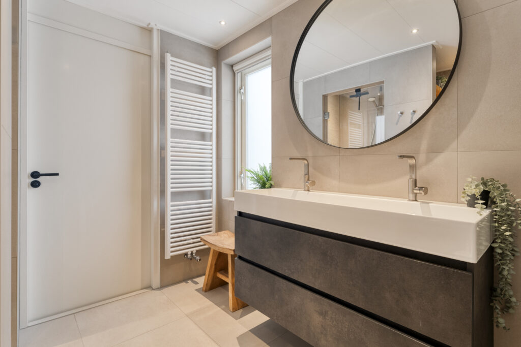 Eerste verdieping: vanaf de ruime overloop is er toegang tot een drietal ruime slaapkamers en een stijlvol ingerichte badkamer, welke in 2021 geheel gerenoveerd is. Eén slaapkamer beschikt over een vaste kast en in de badkamer tref je een ligbad, toilet, inloopdouche en een wastafelmeubel met dubbele wastafels aan. Verder is er op de overloop een splitlevel airconditioning installatie geplaatst die zowel kan koelen als verwarmen.