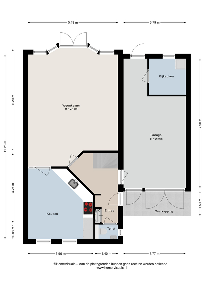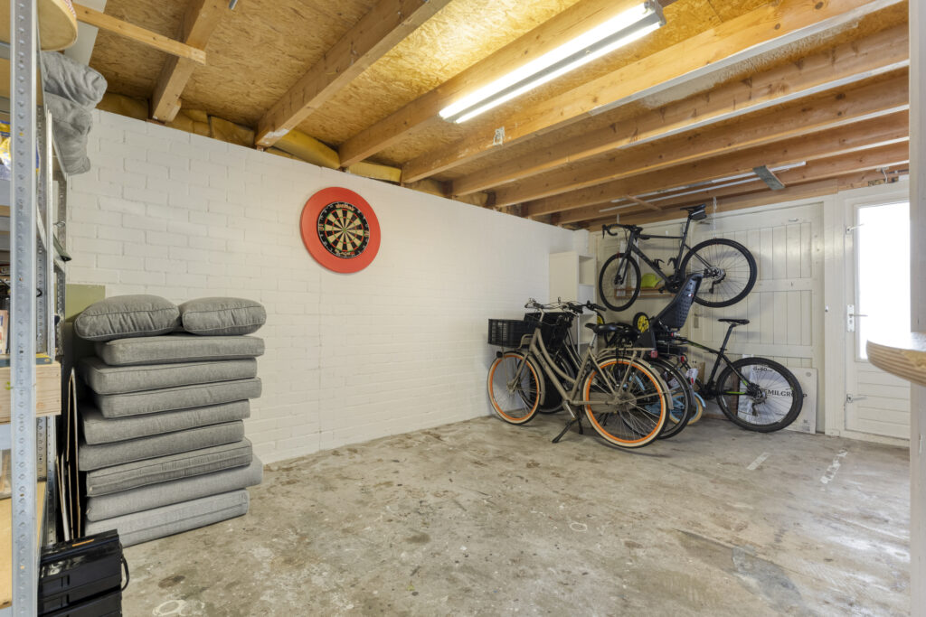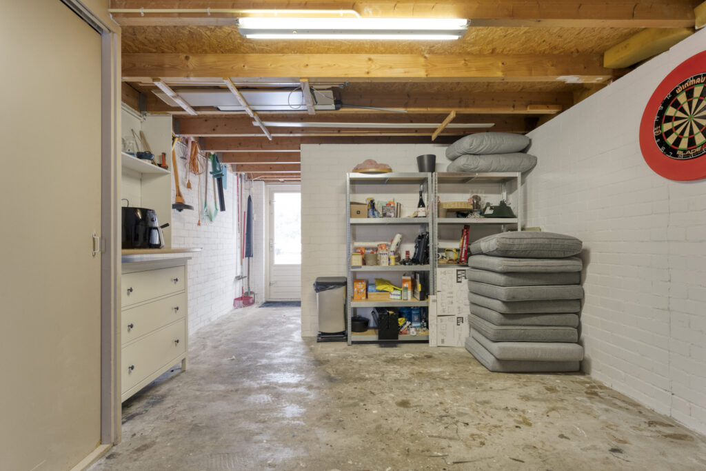 De garage is een praktische ruimte en biedt ruimte om één auto te parkeren. Verder kan de ruimte ook goed gebruikt worden als opslagruimte, fietsenstalling of stalling voor een aanhanger bijvoorbeeld. In de garage is tevens een bijkeuken met de witgoedaansluitingen te vinden en er is toegang tot de achtertuin.