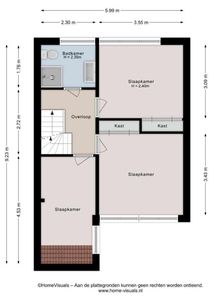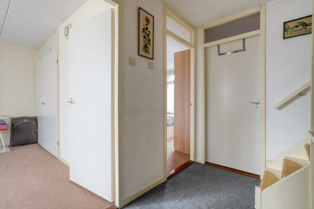 Eerste verdieping: Ruime overloop met toegang tot drie ruime slaapkamers, de badkamer en de trapopgang naar de tweede verdieping. Twee van de slaapkamers beschikken over een vaste kast, ideaal voor extra opbergruimte. De badkamer is voorzien van een douche, een tweede toilet en een wastafelmeubel.