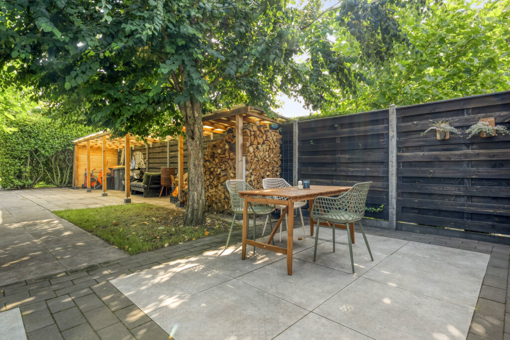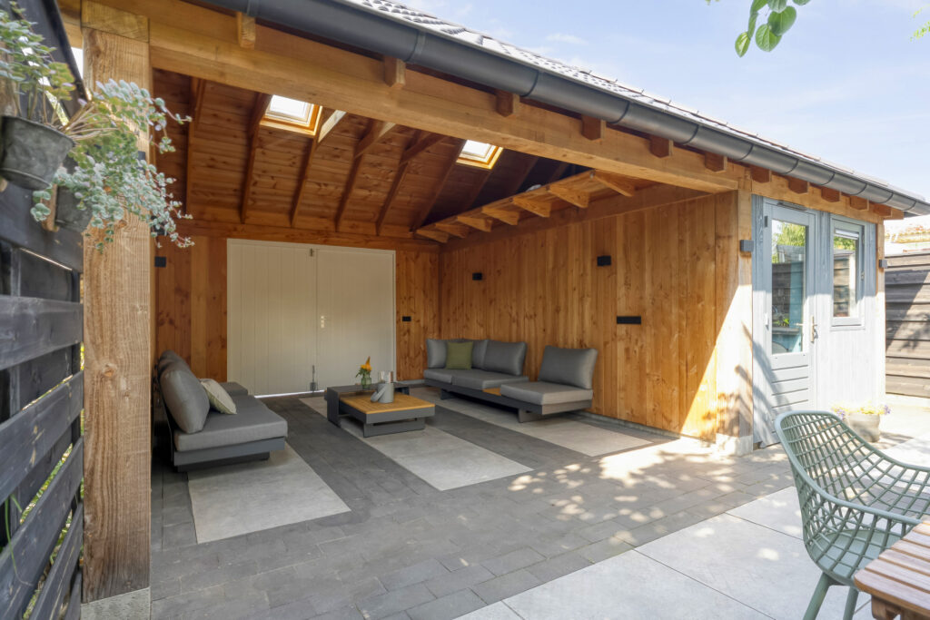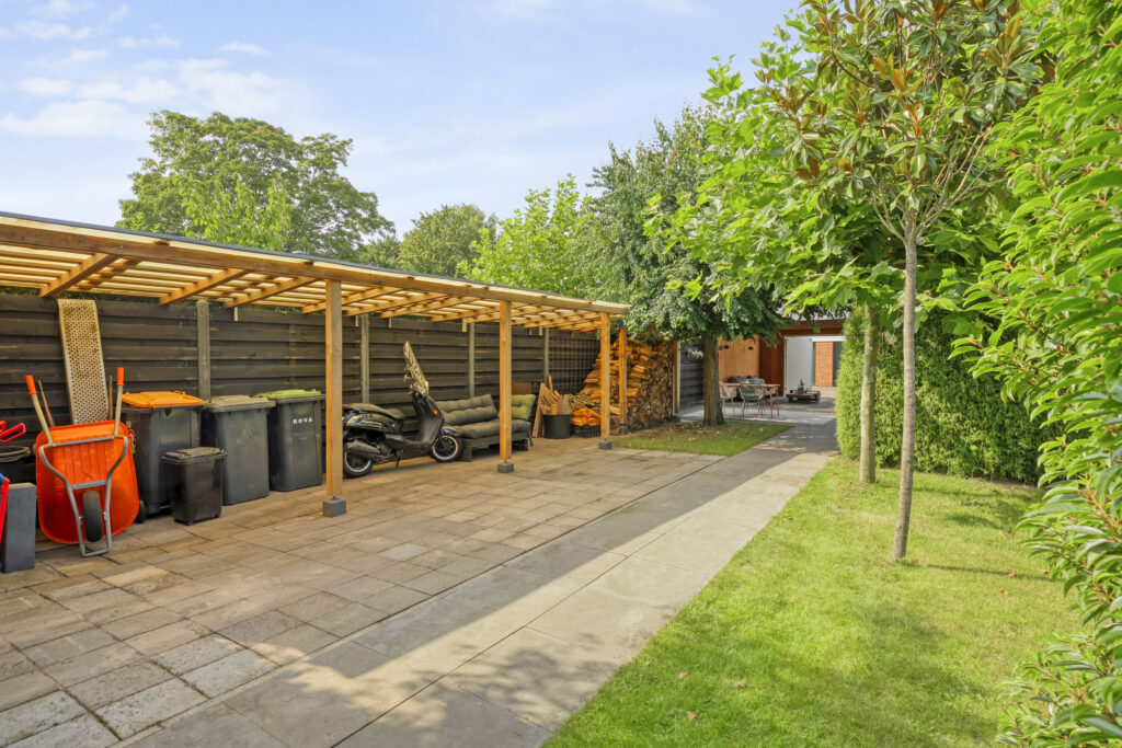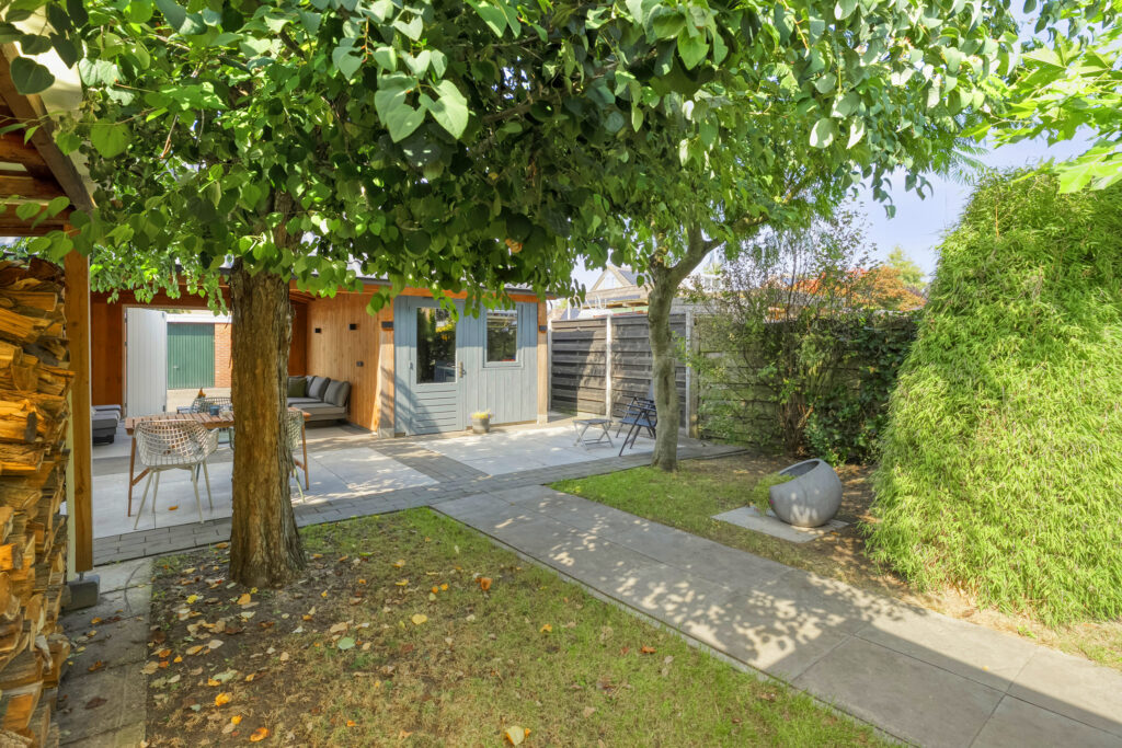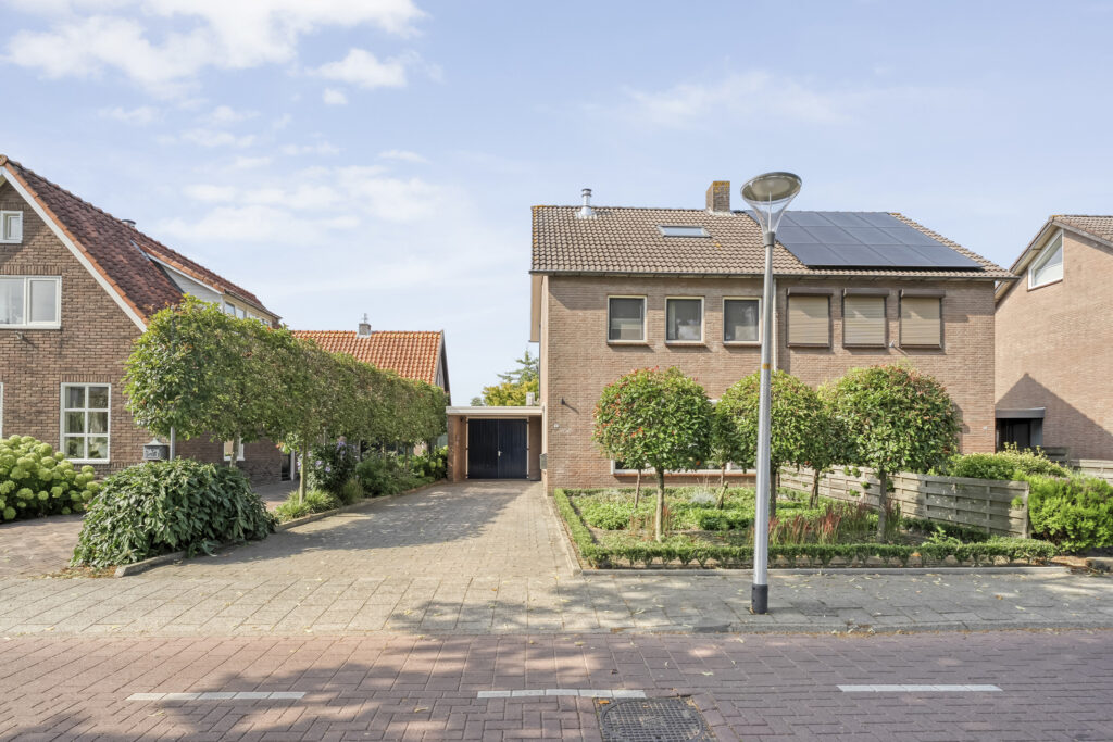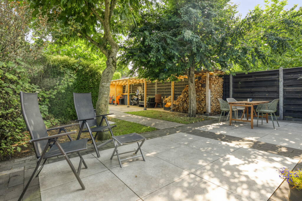Buiten: De achtertuin is royaal en biedt volop privacy. De garage is voorzien van een dubbele deuren en een loopdeur naar de tuin. Via de vloer van de garage kom je onder de vloer van de keuken, waar zich de grondwaterpomp bevindt. Achterin de tuin staat een kapschuur met twee dubbele deuren, bergruimte en een zolder. Tevens zijn er meerdere grondwater-tappunten aanwezig in de tuin, ideaal voor tuinonderhoud. De tuin is tevens bereikbaar via een achterom.