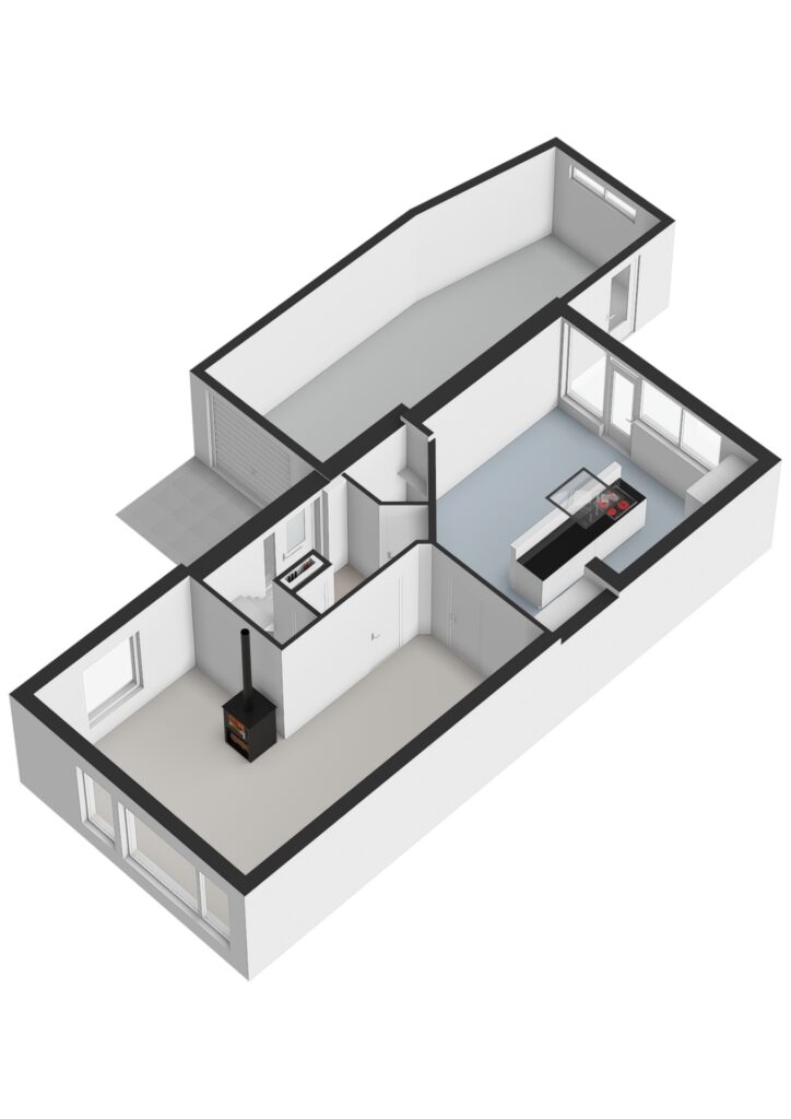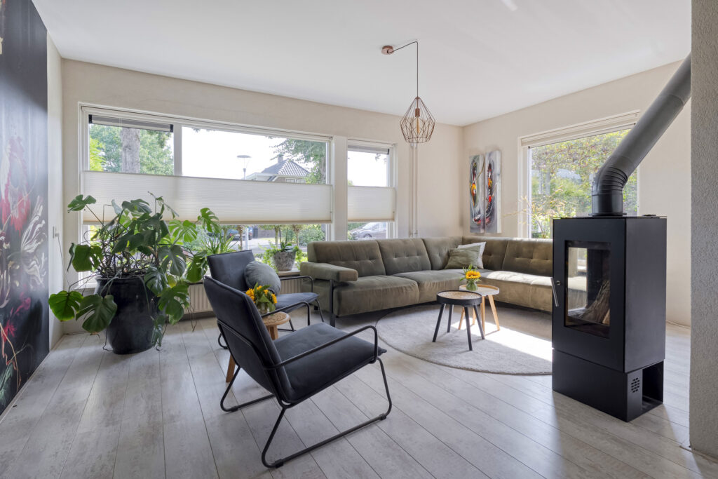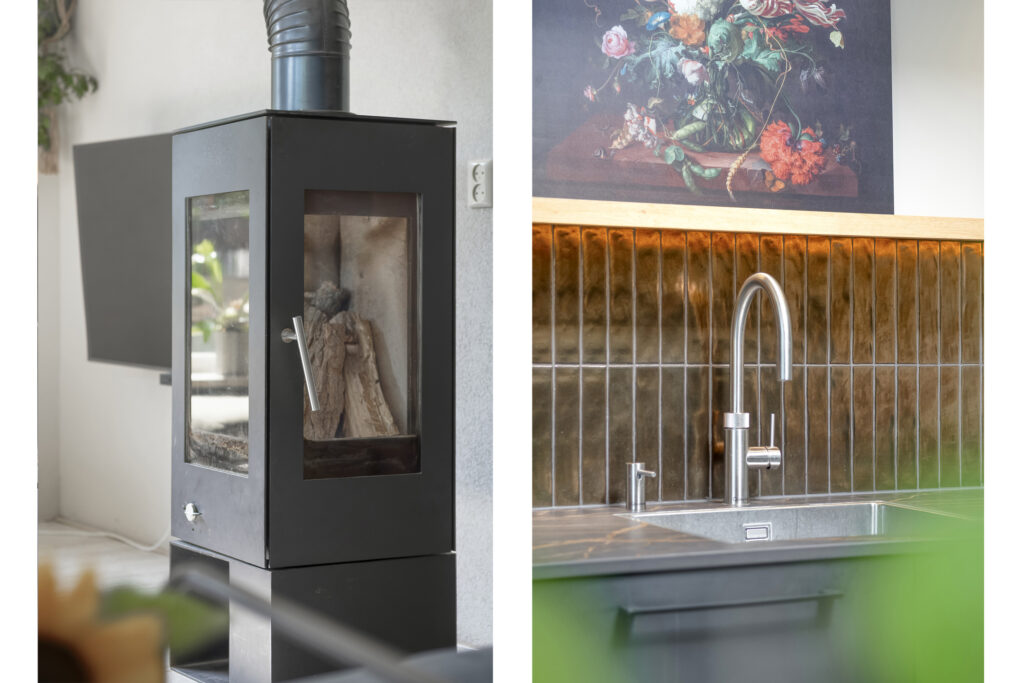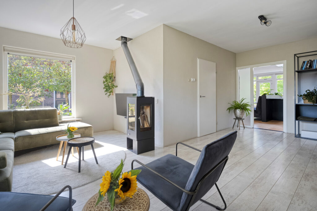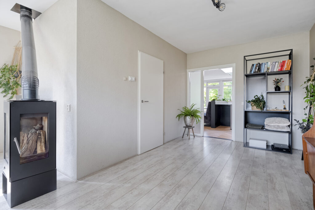Begane grond: Entree/hal met toegang tot de meterkast, een vaste kast, een modern toilet, de eetkamer/keuken en woonkamer. De woonkeuken met vloerverwarming en een nieuwe keuken (2023) welke is voorzien van een kookeiland, inductieplaat, ingebouwde afzuigkap, vaatwasser, stoomoven, quooker en koelkast. Via de loopdeur bereik je de ruime achtertuin. De woonkamer beschikt over grote raampartijen en een houtkachel, wat zorgt voor een prettige sfeer.