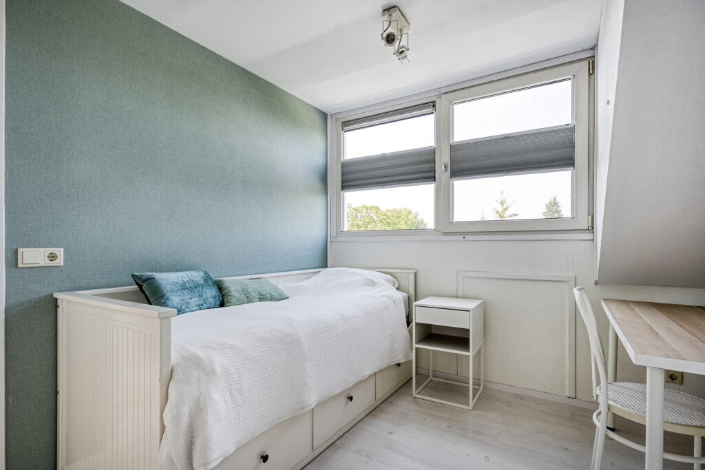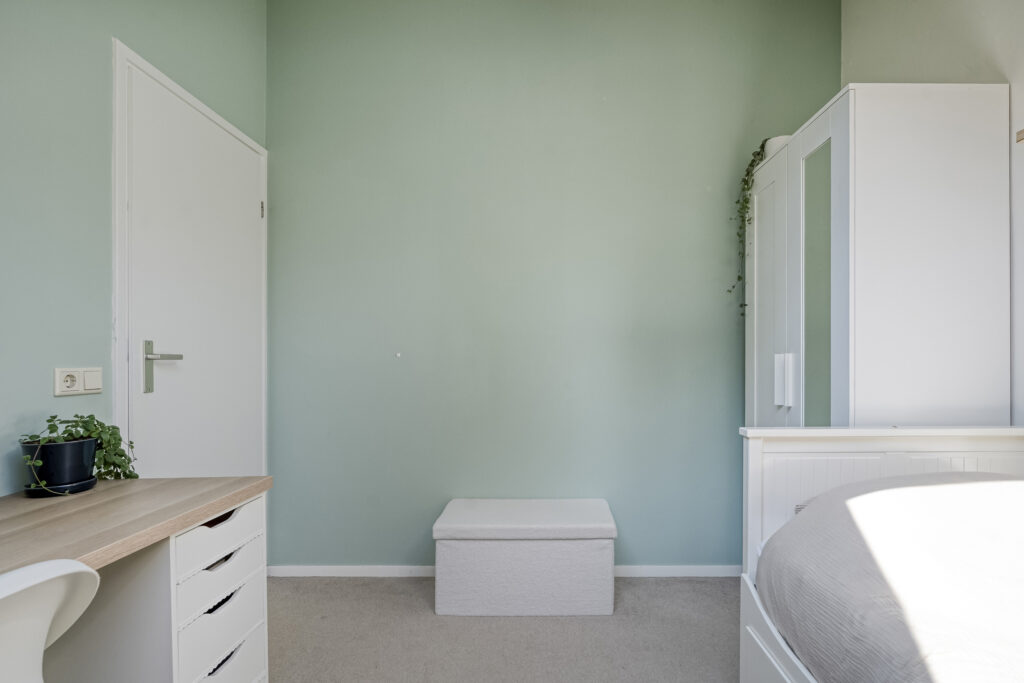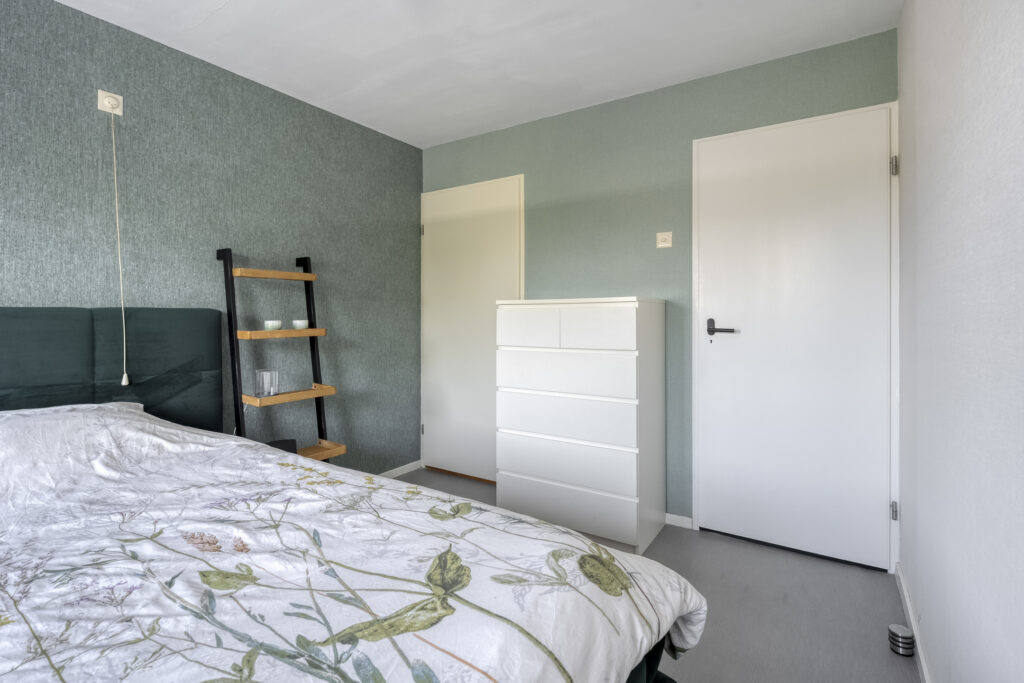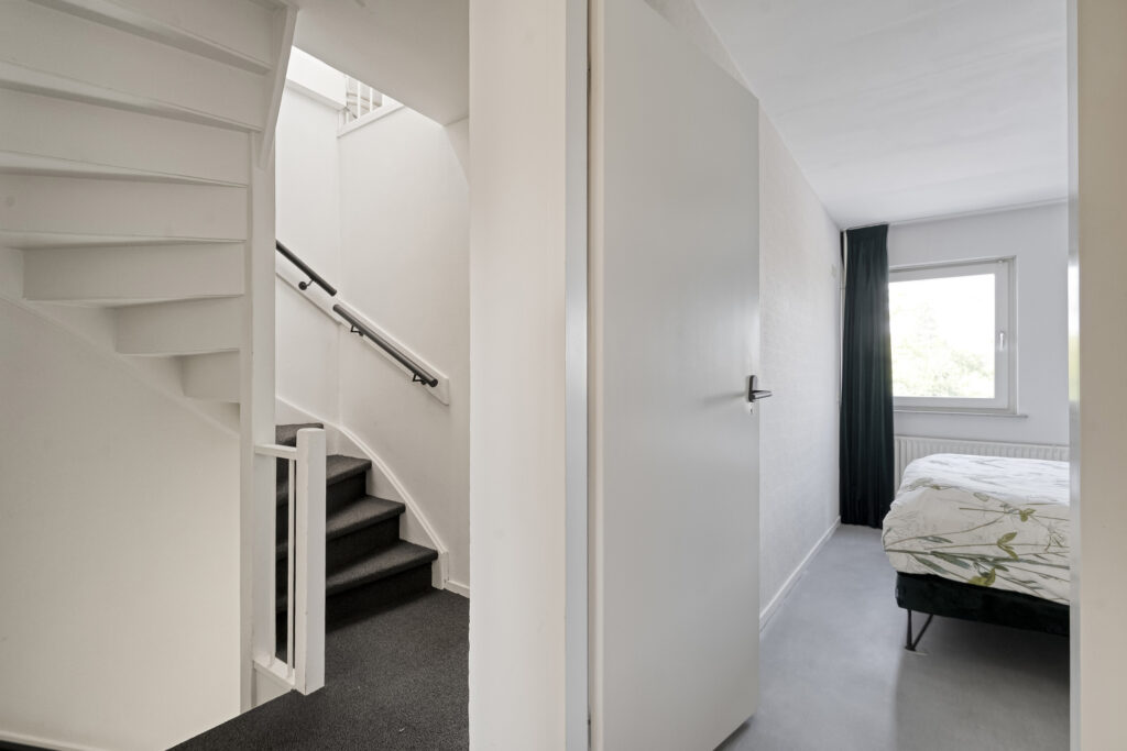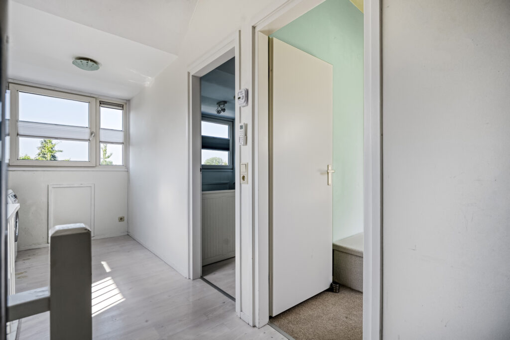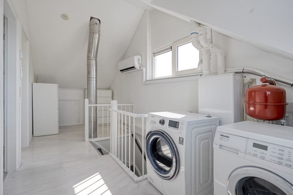 Tweede verdieping: De voorzolder is voorzien van een dakkapel, een airco-installatie (verwarmen en koelen), een cv-ketel en witgoedaansluiting. Daarnaast zijn er twee slaapkamers, waarvan één met dakkapel en één met dakraam.