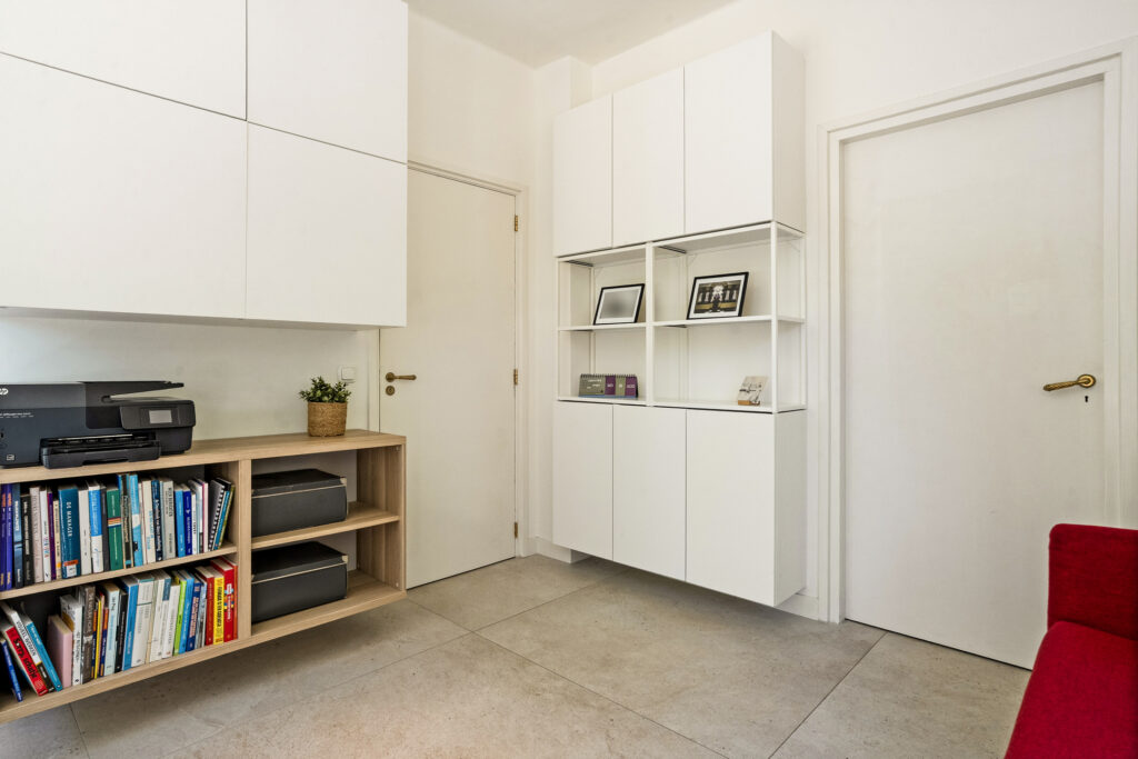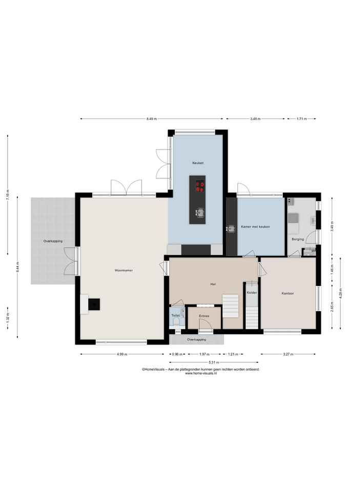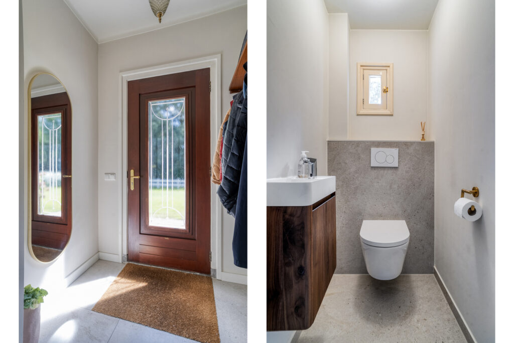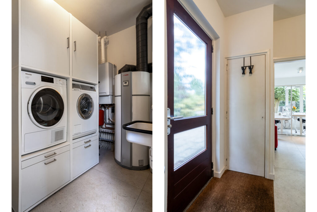 Via de hal is de kelder, de bijkeuken (ingericht als kamer met keuken voor het gastenverblijf) en het kantoor bereikbaar. Het kantoor is ook zeker te gebruiken als slaapkamer beneden. In de berging (bereikbaar via het kantoor) zijn alle installaties geïnstalleerd en vind je de meterkast en wasmachine- en drogeraansluiting. De hele benedenverdieping is voorzien van vloerverwarming.