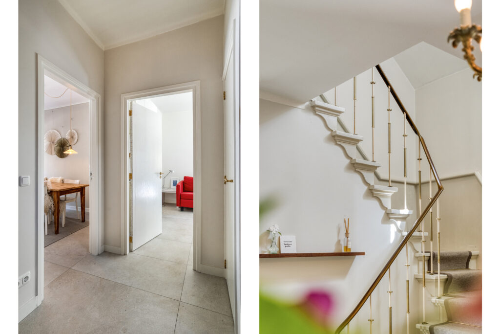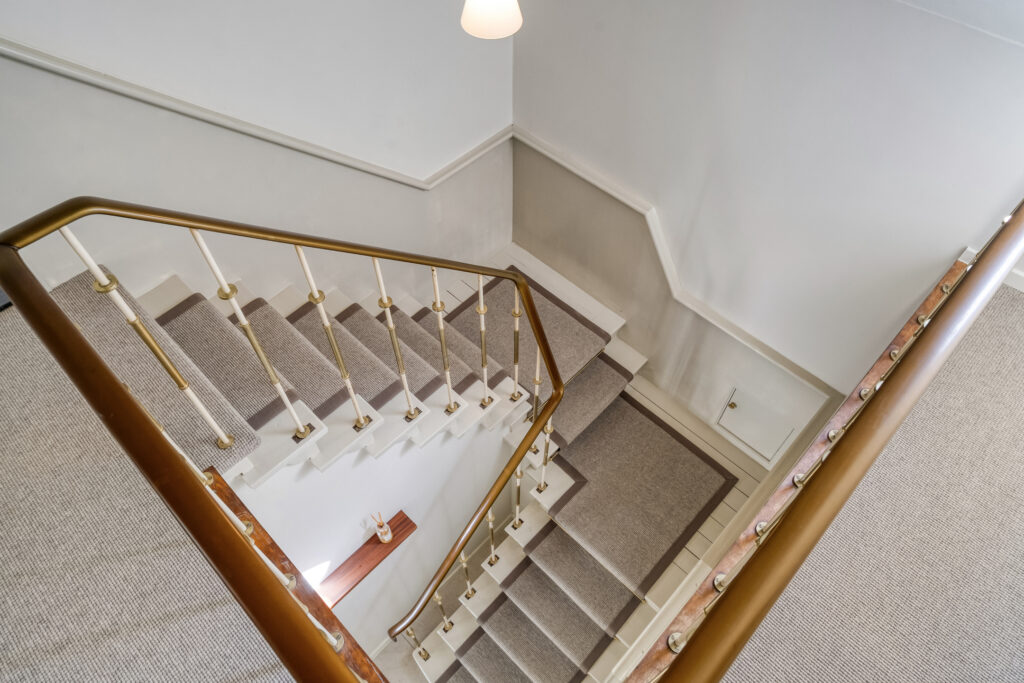 – Behoud van originele authentieke details zoals messing trap en deuren, glas in lood;