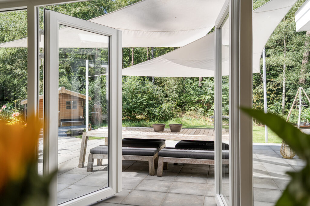 Door de ruimte is er op zomerse dagen altijd ergens een plekje in de zon te vinden, de tuin is heerlijk besloten en grenst direct aan het bos.