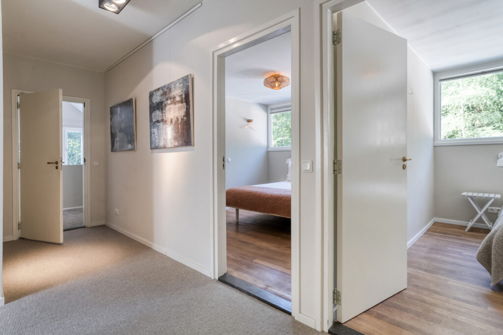 1e Verdieping: Ruime overloop/vide welke toegang geeft tot de 3 gastenkamers met badkamers en de royale privé/ouder slaapkamer met eigen badkamer.