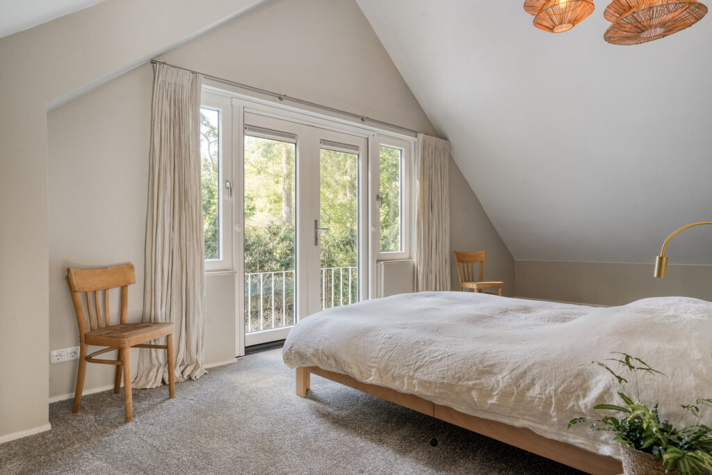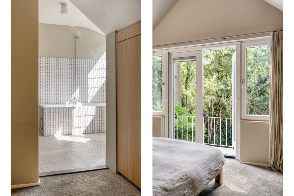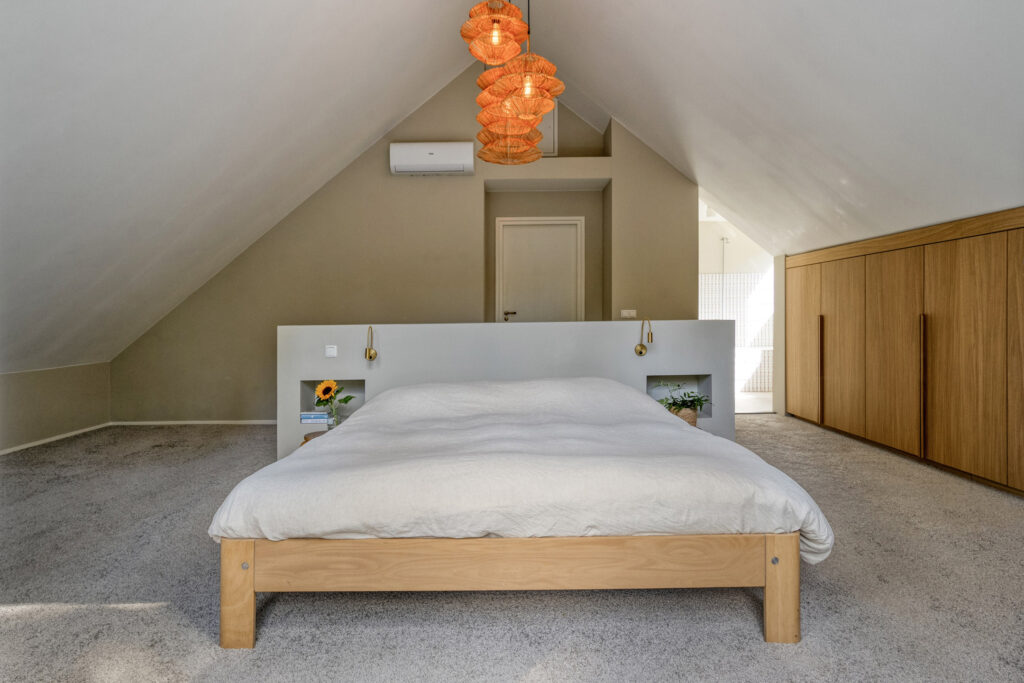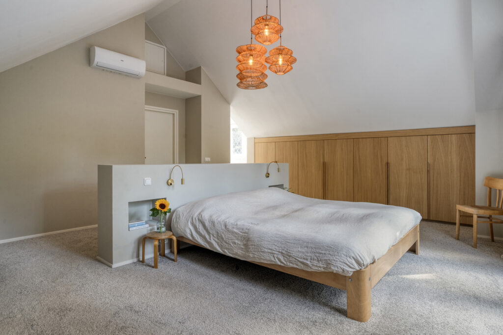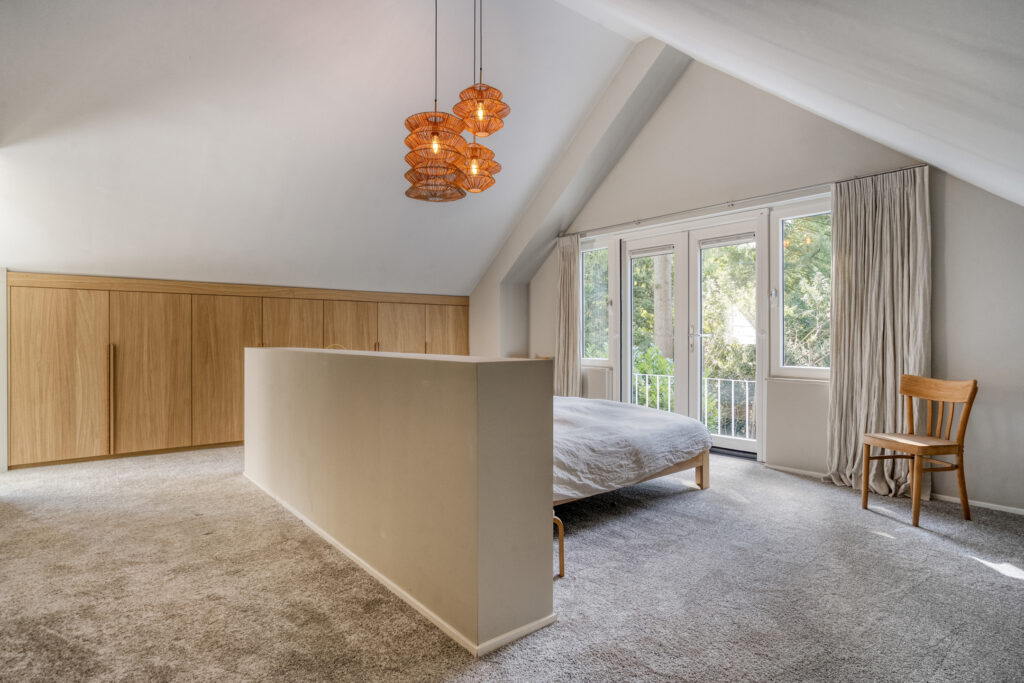 Deze slaapkamer is voorzien van een op maat gemaakte kastenwand (2025) en geeft toegang tot het balkon door middel van dubbele deuren. Vanuit de slaapkamer is de inloop badkamer te bereiken met een dubbele wasbak, toilet en bad/douche.