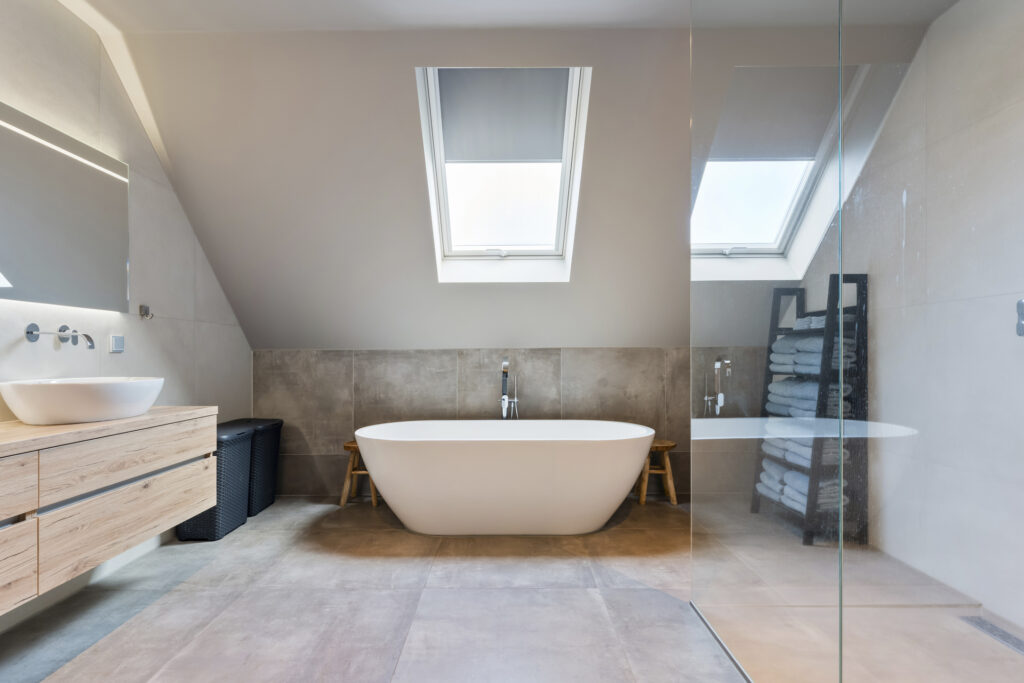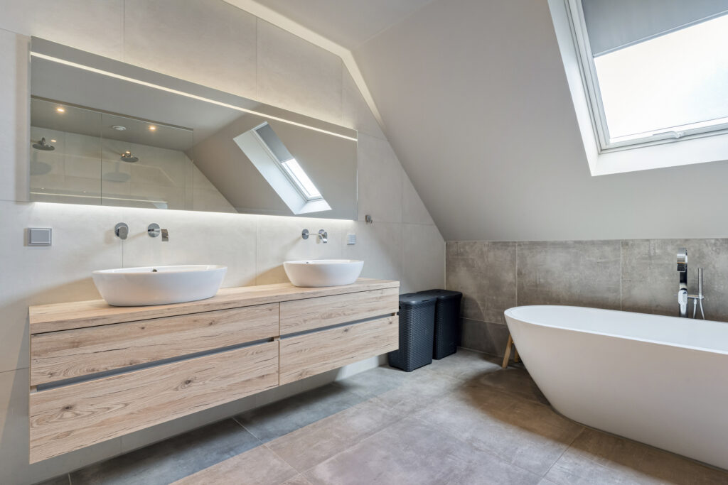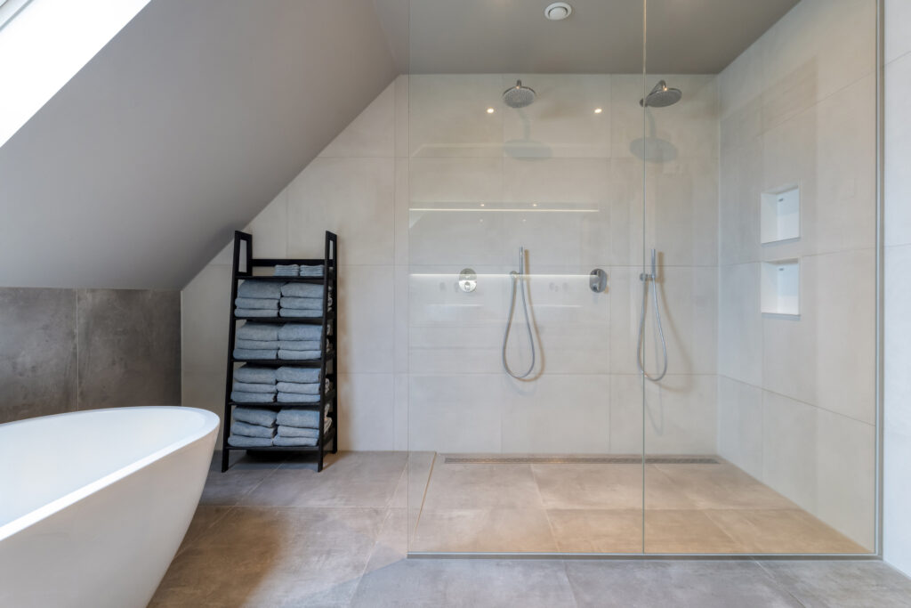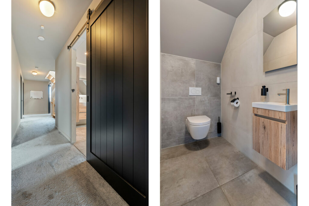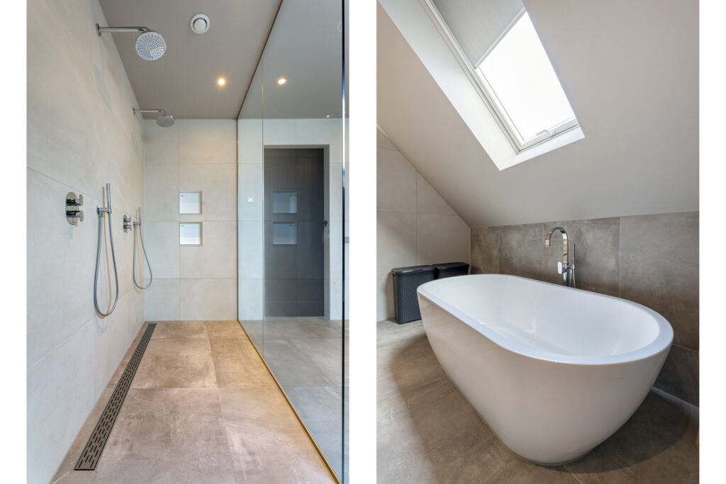 1e verdieping: Hier bevinden zich vijf goed bemeten slaapkamers, stuk voor stuk licht en ruim opgezet. De badkamer is luxe uitgevoerd met een ligbad, dubbele inloopdouche en dubbele wastafel. Op de overloop vind je daarnaast een separaat toilet.