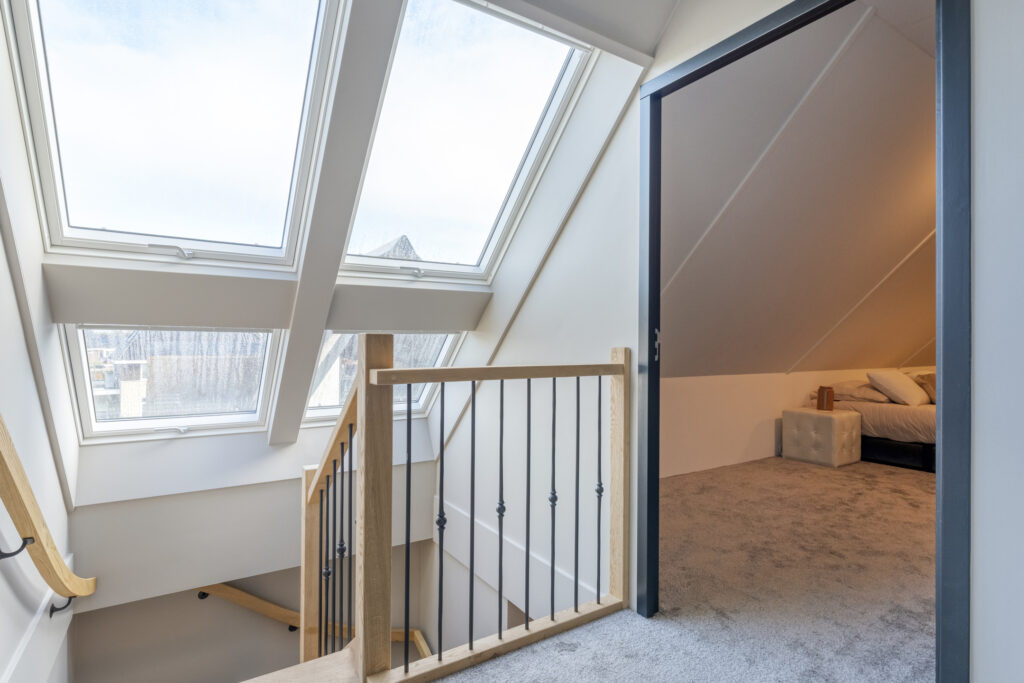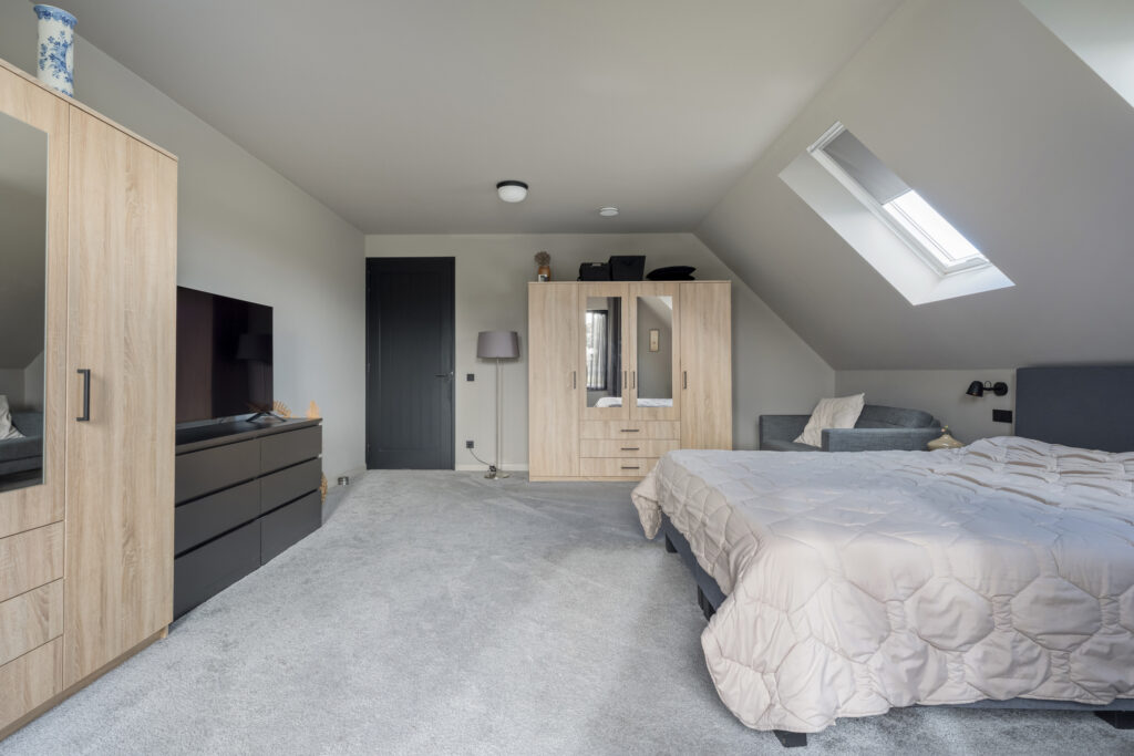 2e verdieping: Via de overloop is nog een ruime slaapkamer en een extra berging te bereiken.