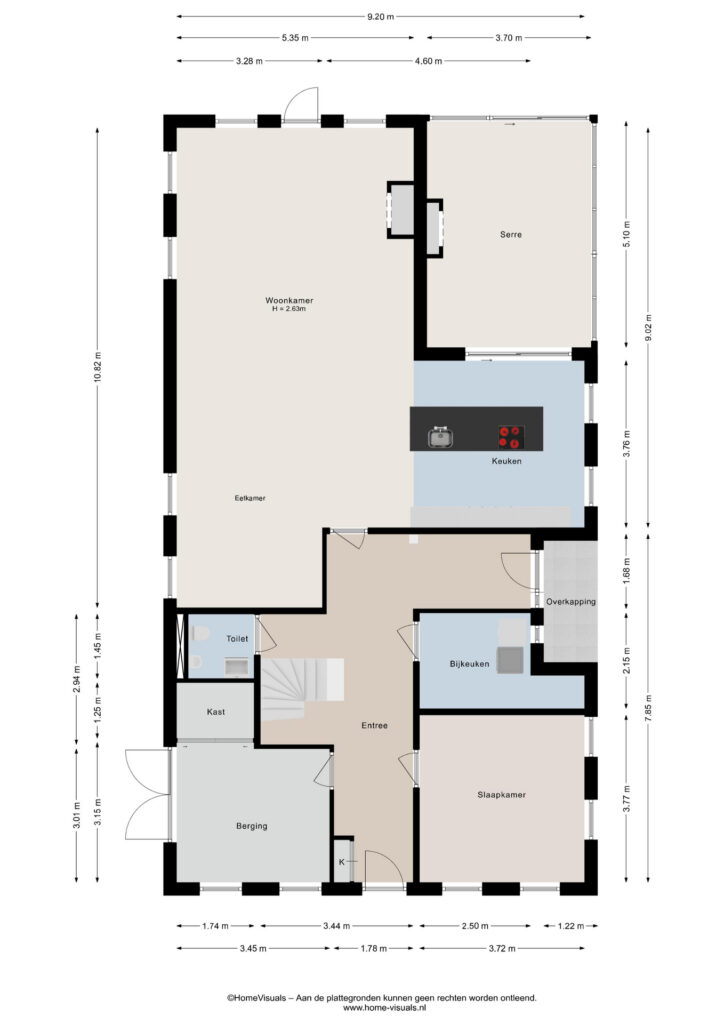 De keuken is een echte blikvanger: modern, voorzien van een groot kookeiland en alle denkbare inbouwapparatuur zoals een Quooker kraan, koffiezet apparaat, combi oven en een inductiekookplaat met ingebouwde afzuiging. Vanuit hier loop je door naar de lichte serre, waar het binnen- en buitenleven naadloos in elkaar overgaan. Verder is er op de begane grond nog een toilet, een praktische kast en een ruime berging met eigen toegang van buiten. Zowel de serre en de woonkamer zijn voorzien van een sfeervolle houtkachel.