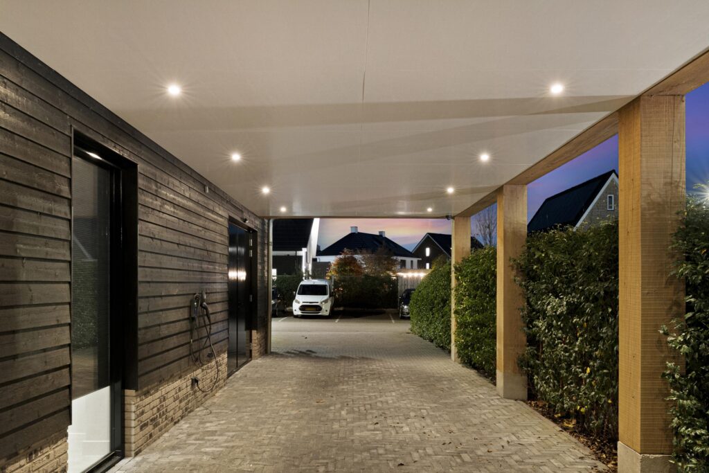 Aan de voorzijde is er voldoende parkeergelegenheid op eigen terrein, inclusief een aangebouwde carport. Het gehele perceel is voorzien van 360 graden camera’s